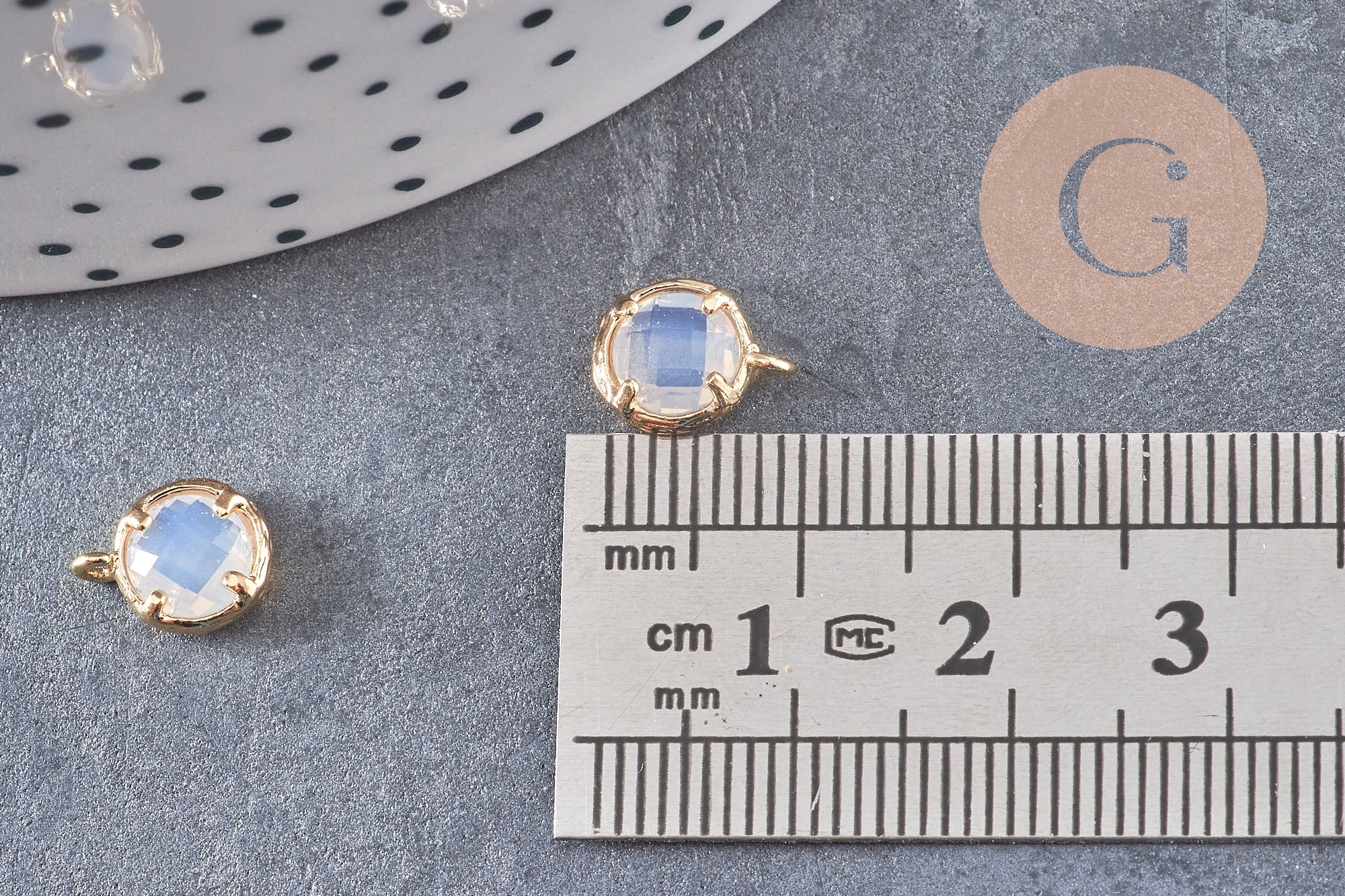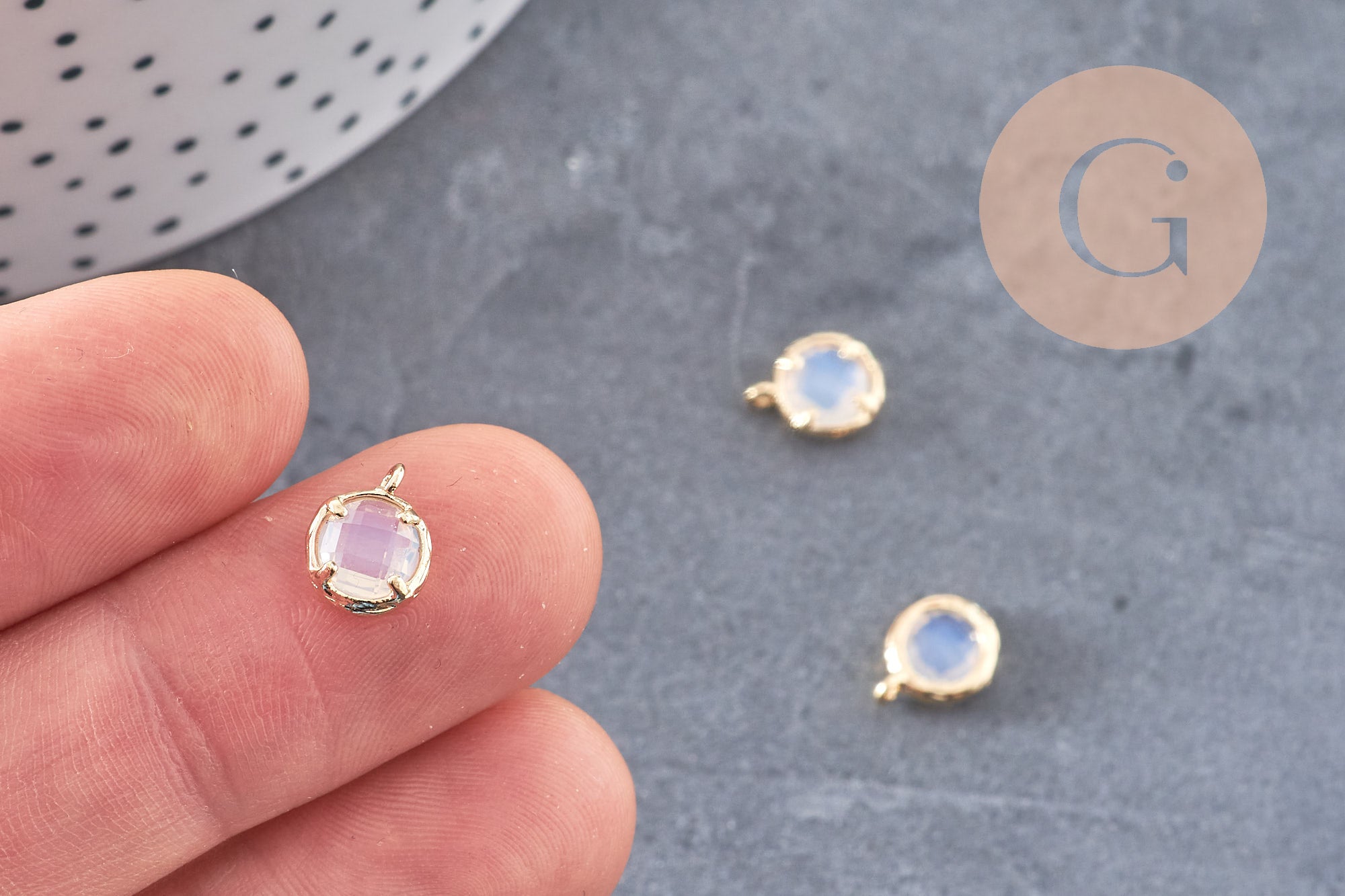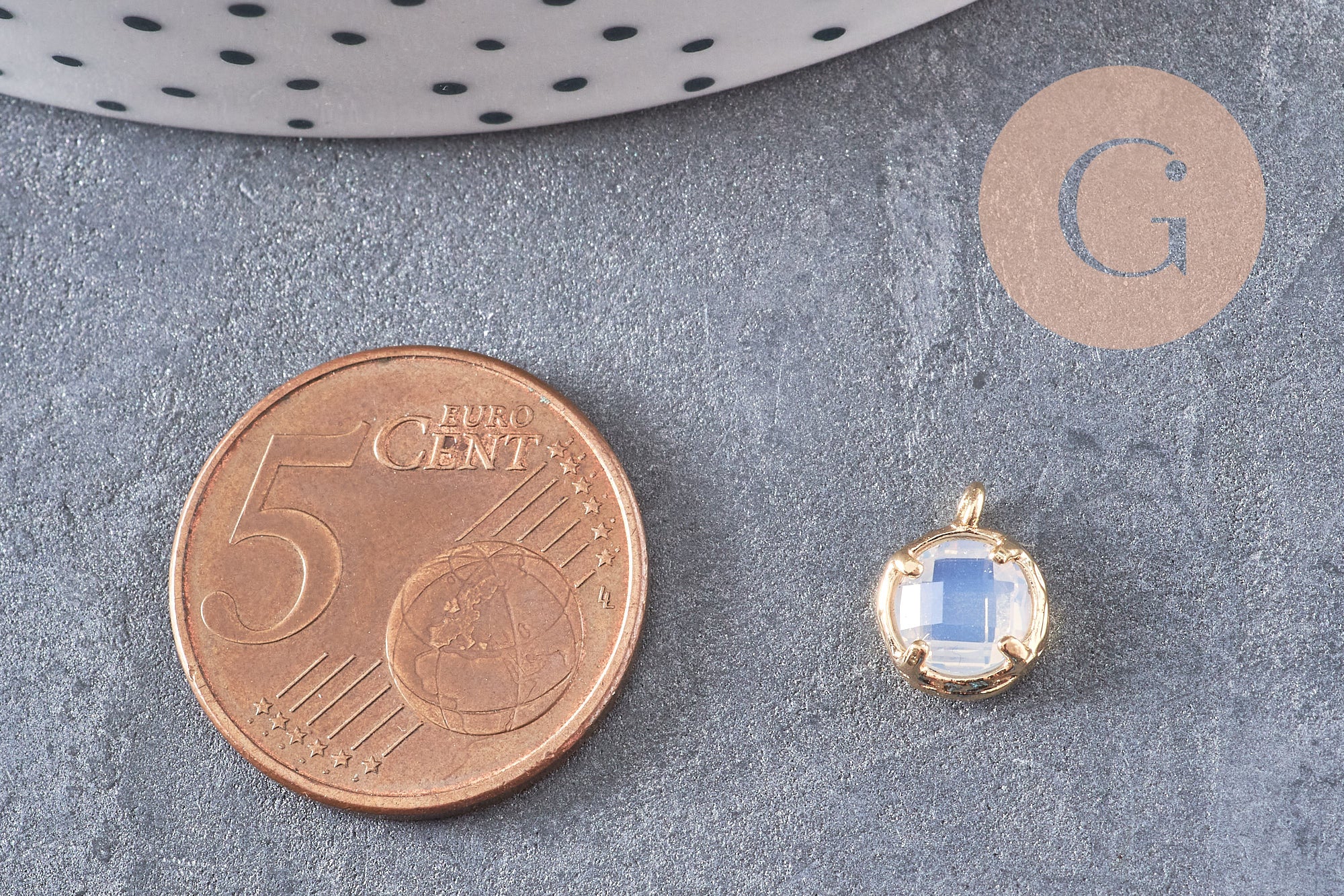 Pendentif rond doré 24 carats cristal opalite,fournitures créatives,pendentif cristal, pendentif doré,cristal opalite,création bijoux,10mm