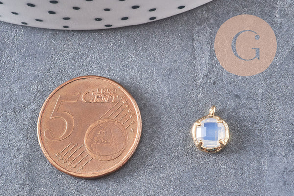 Pendentif rond doré 24 carats cristal opalite,pendentif cristal, pendentif doré,cristal opalite,création bijoux,10mm, x1 (G6001)