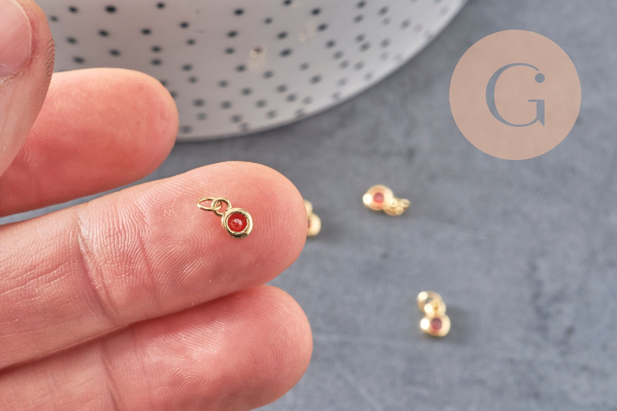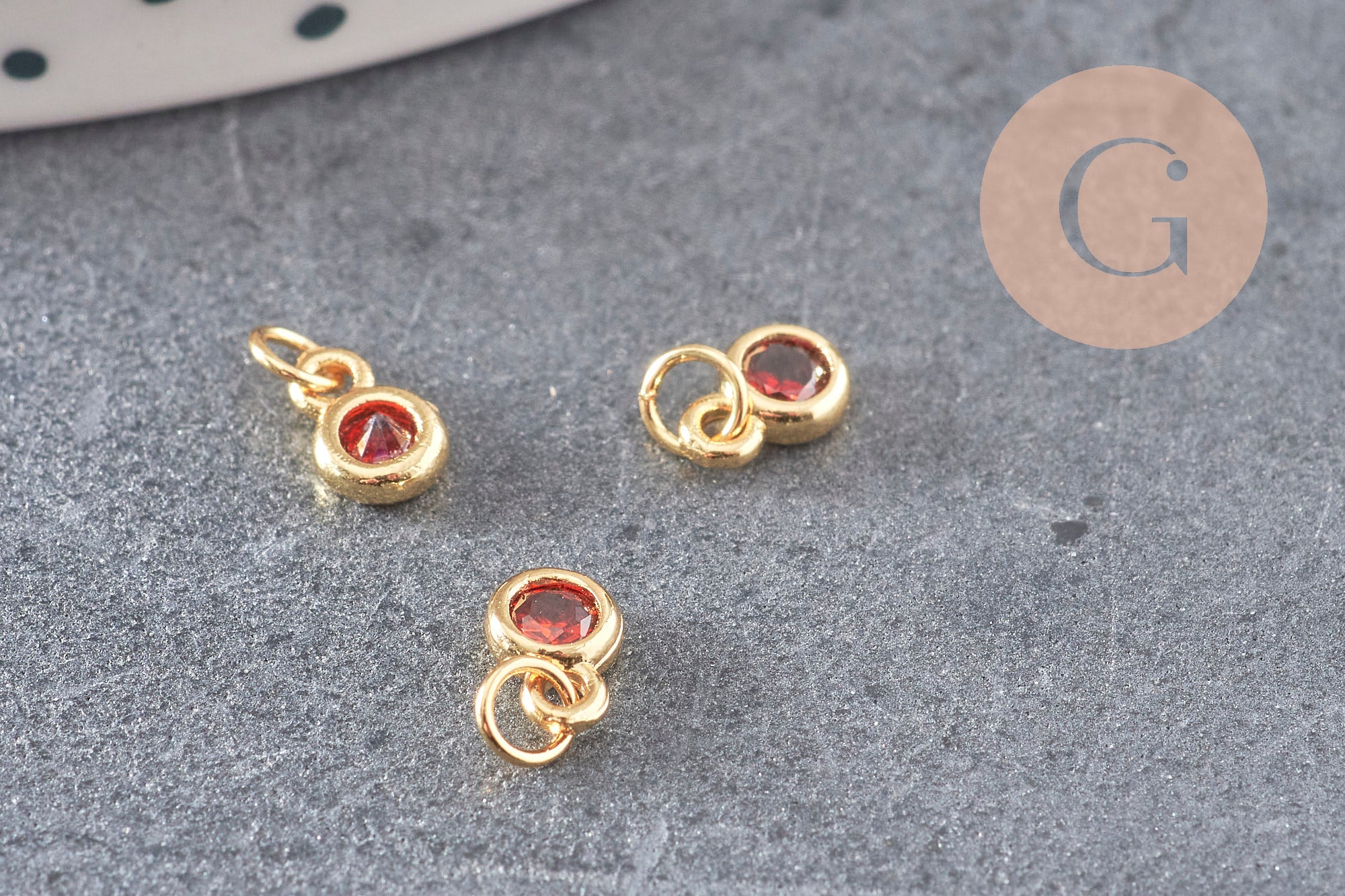 Une adorable mini breloque dorée avec un zircon rouge. Vous pourrez composer de magnifiques boucles et colliers en utilisant ce pendentif connecteur très tendance.