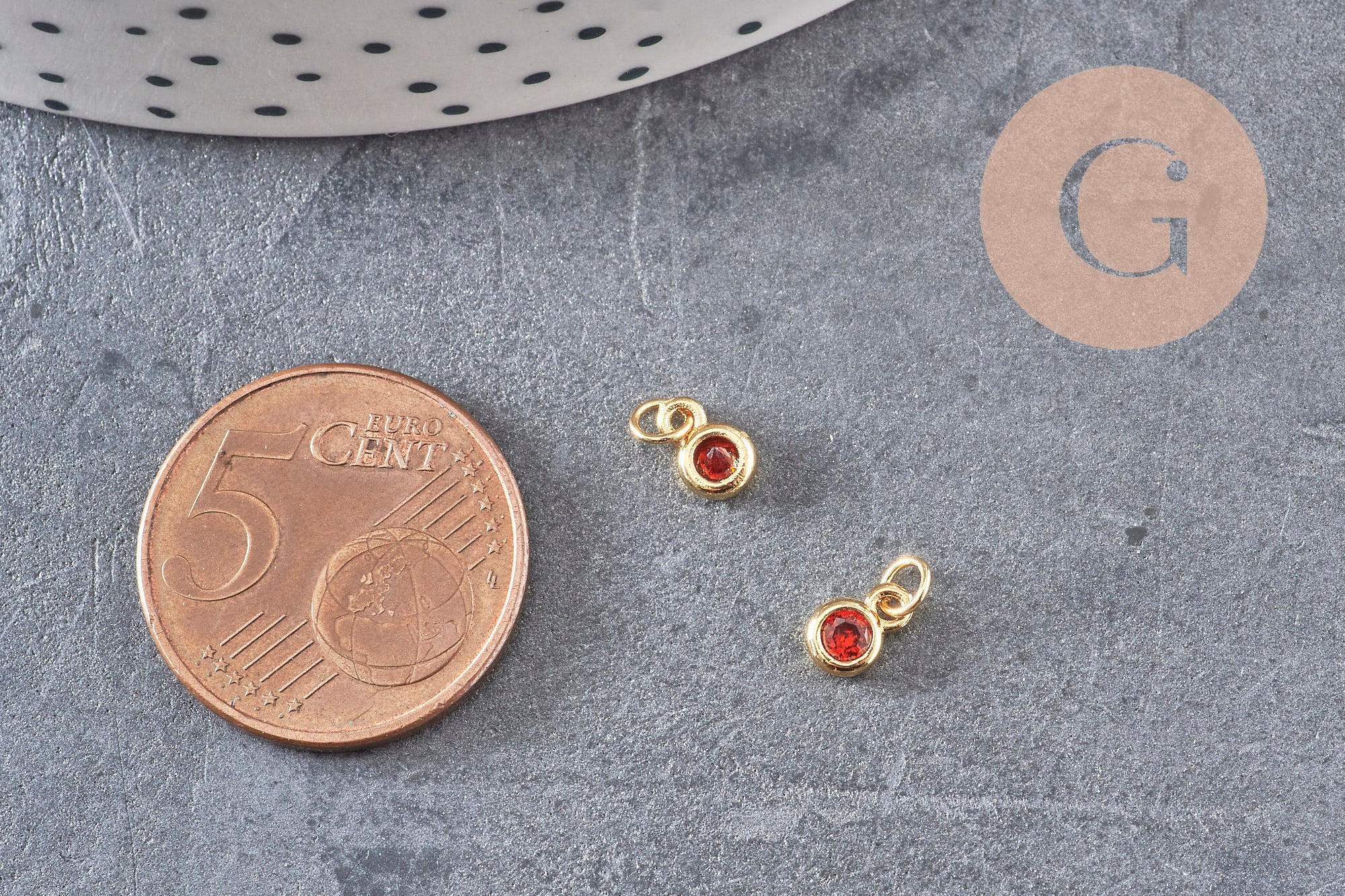 Pendentif rond doré 24 carats zircon rouge, pendentif cristal, pendentif doré cristal, création bijoux,6.5mm, les 5