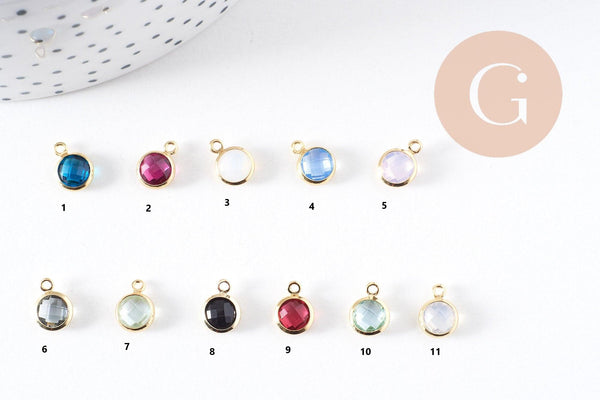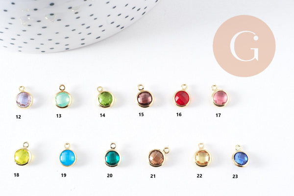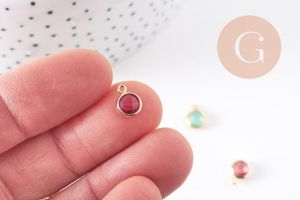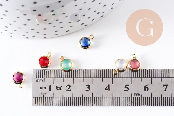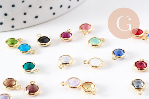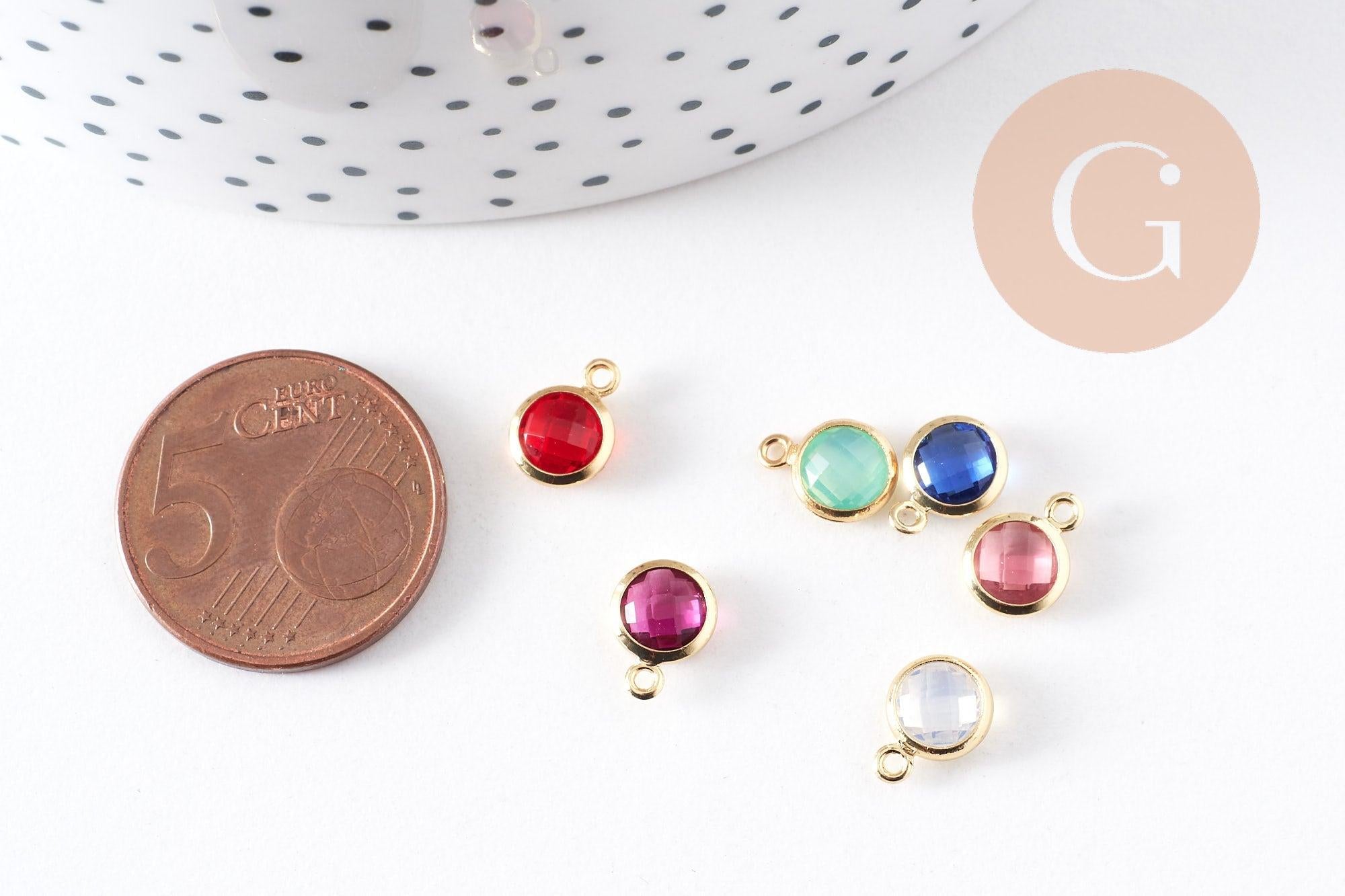Craquez pour ce joli pendentif rond en cristal coloré, cerclé de laiton doré.