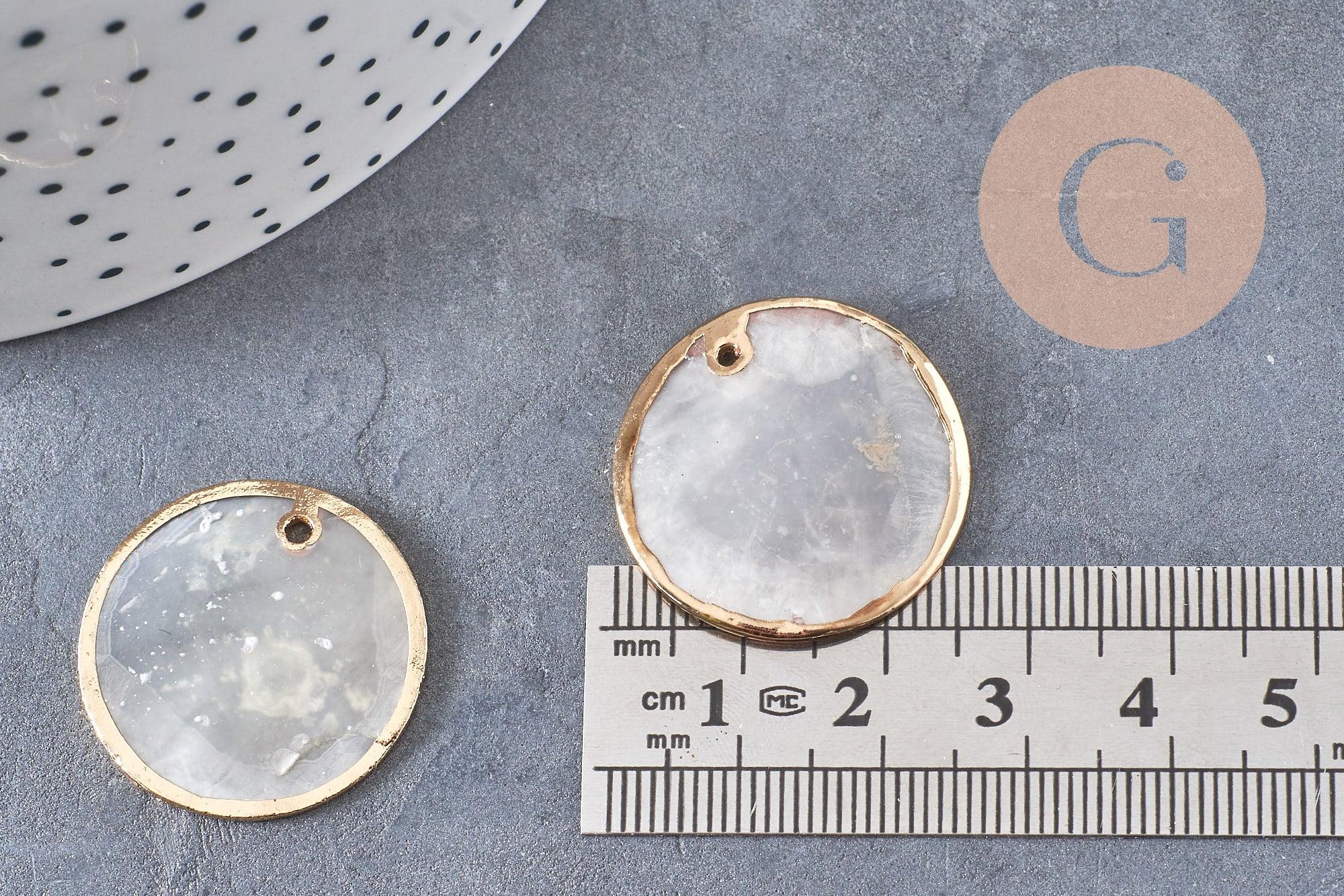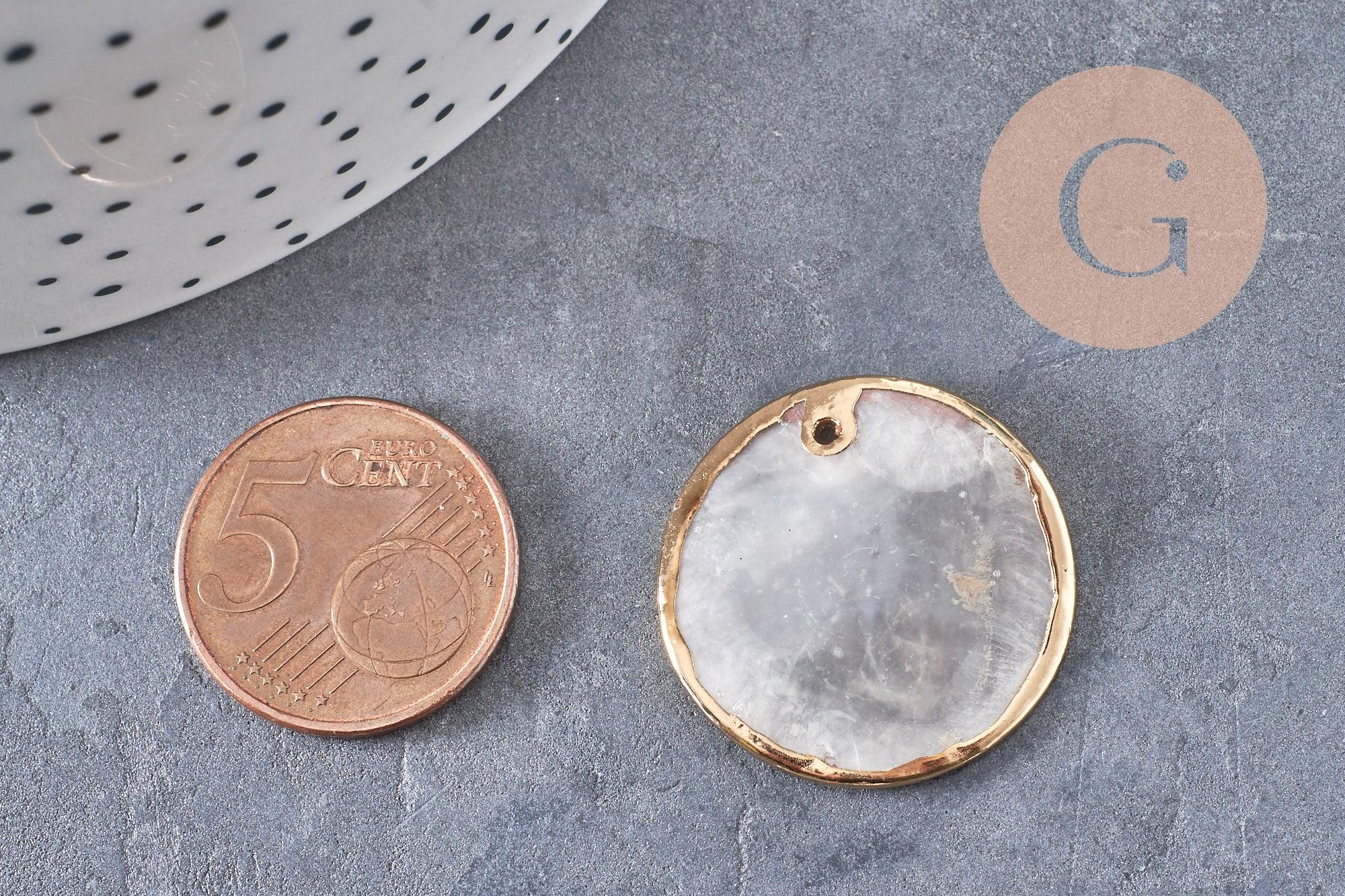 Lot de 2 pendentifs dorés ronds coquillages naturels en nacre blanche 25mm G2434.
