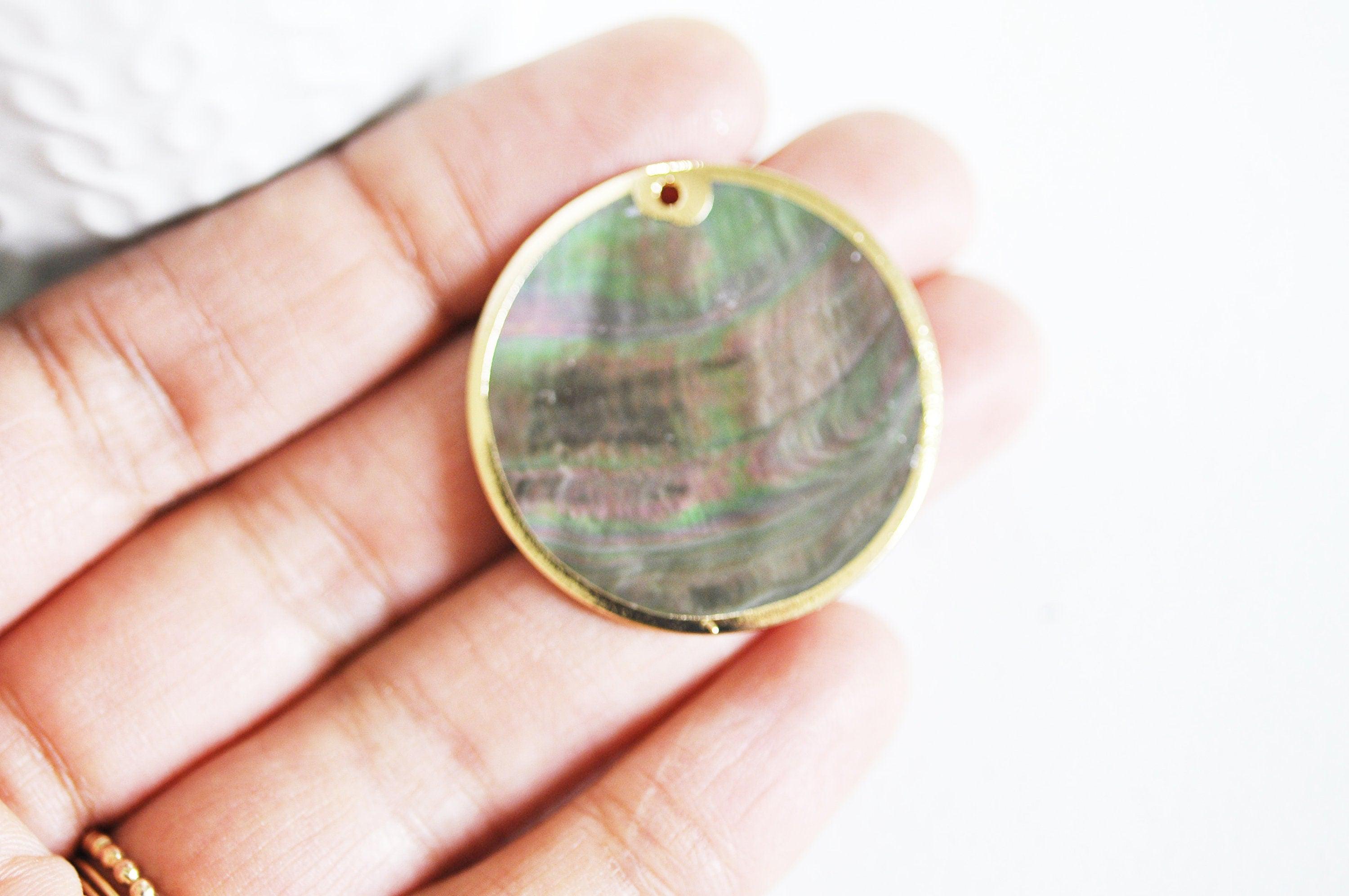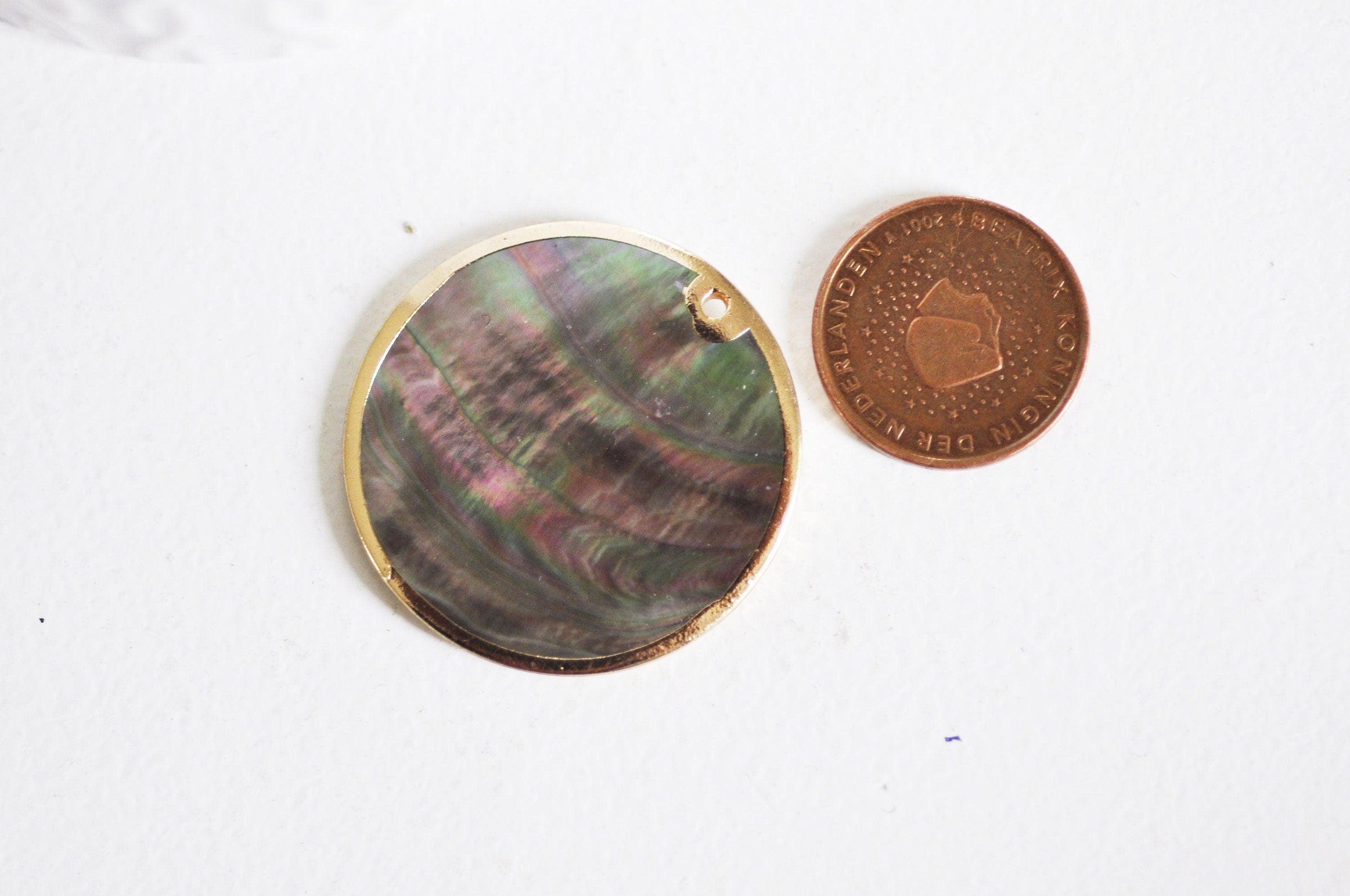 Pendentif rond nacre noire doré, pendentif coquillage, coquillage noir, coquillage naturel,création bijoux,35mm,lot de 2