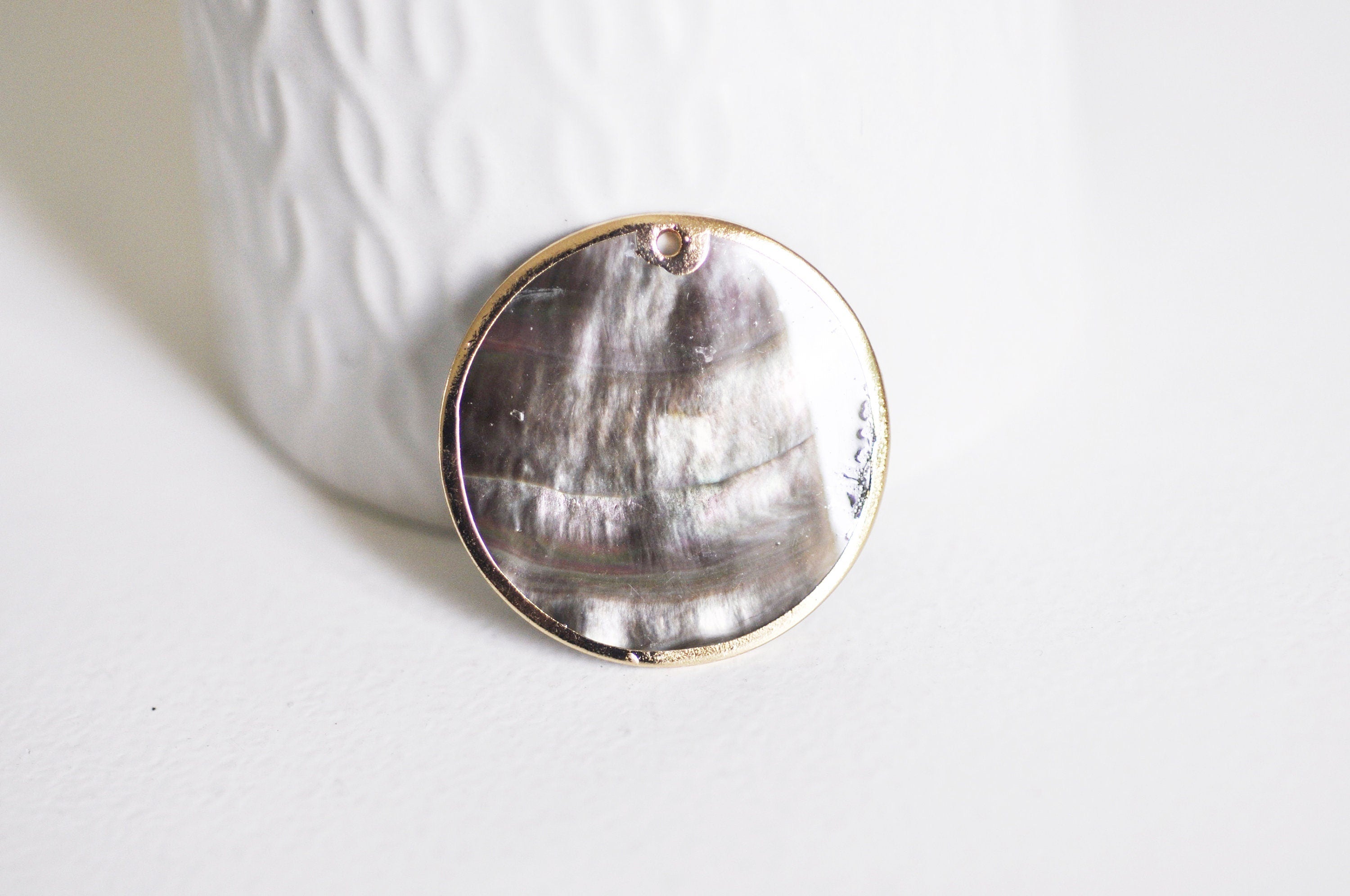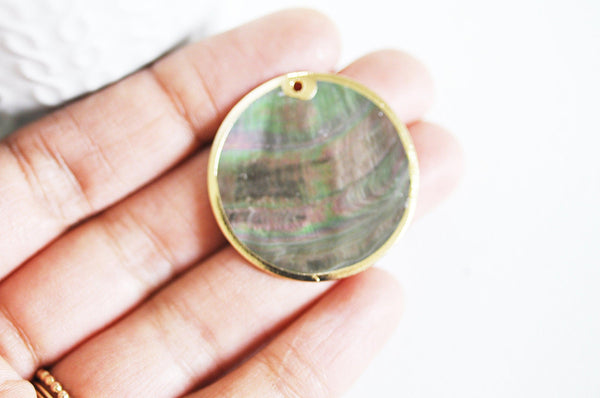 Pendentif rond nacre noire doré, pendentif coquillage, coquillage noir, coquillage naturel,création bijoux,35mm, x2 (G2182)