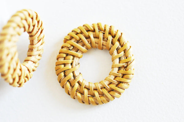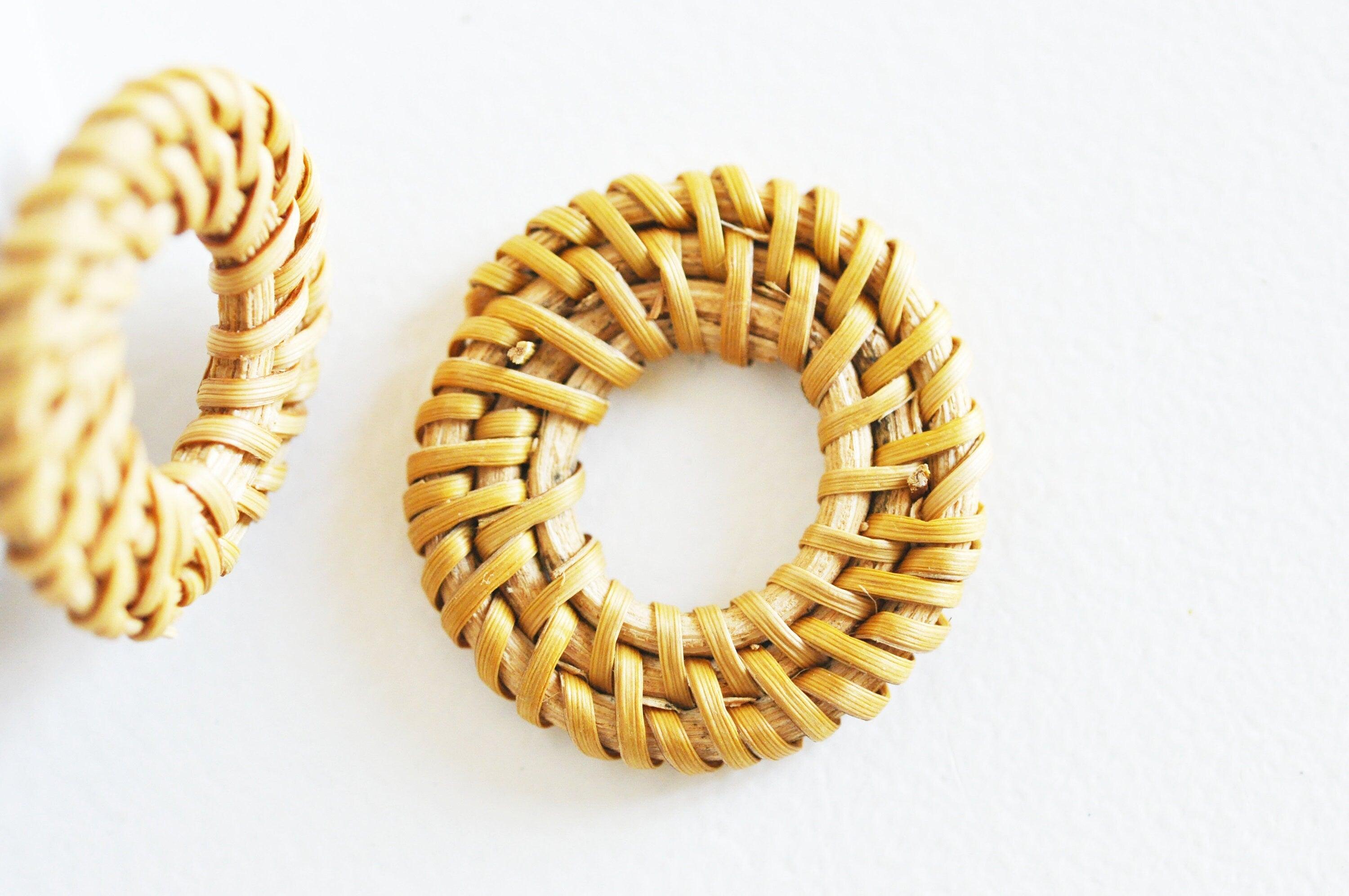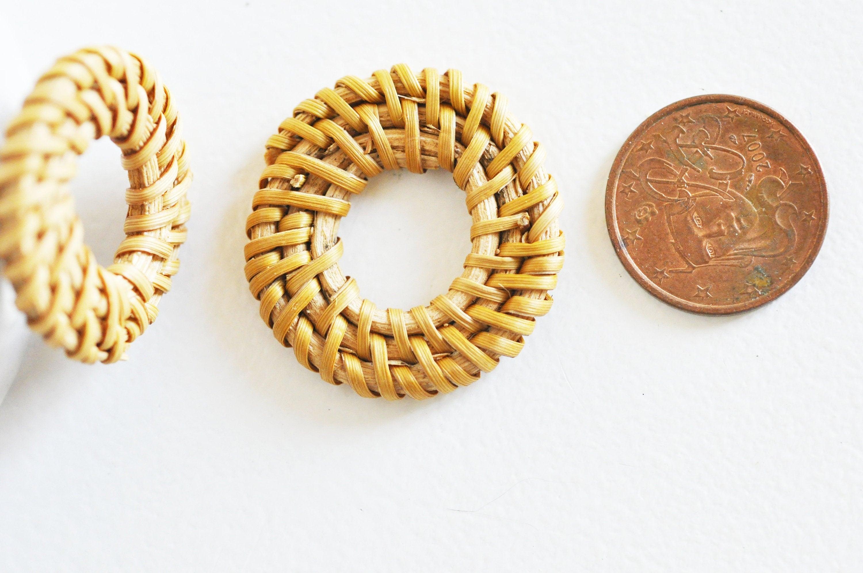 Pendentif rond osier tressé naturel, fournitures créatives, perle bois,perle osier, création bijoux, Perles géométriques,28-34mm, lot de 2