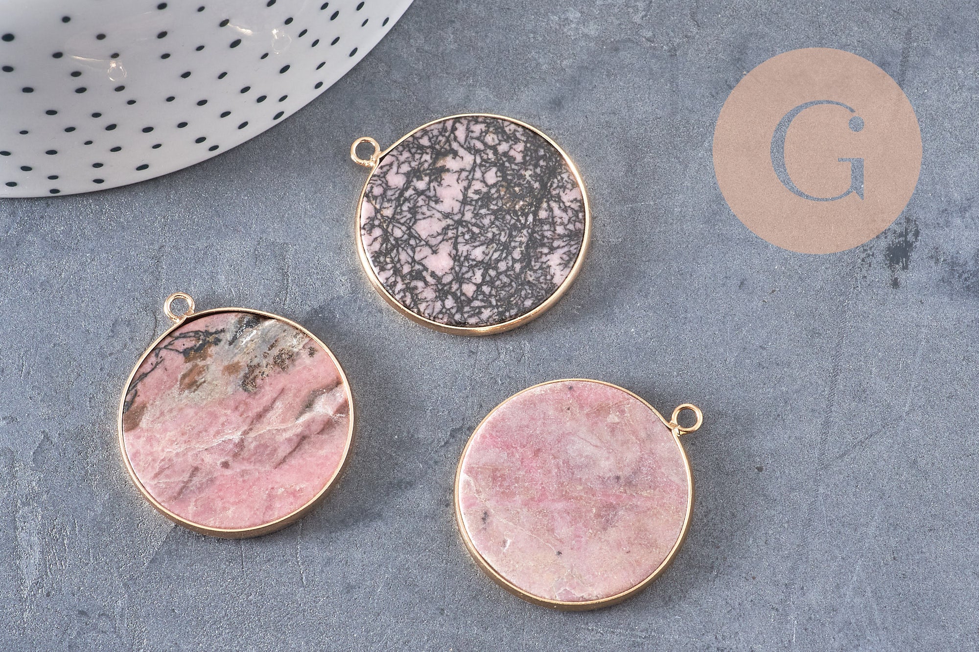 Pendentif rond rhodonite,pendentif bijoux,pendentif pierre, rhodonite Naturelle,pendentif rhonodite,35mm, l'unité