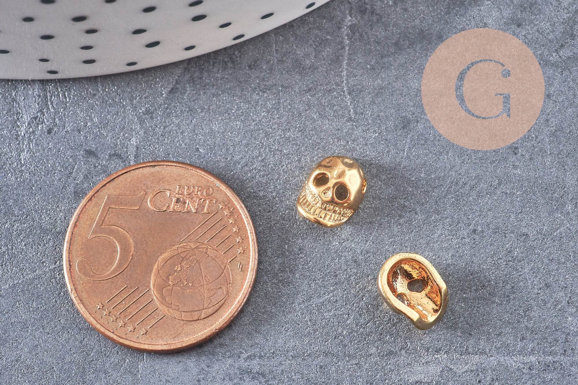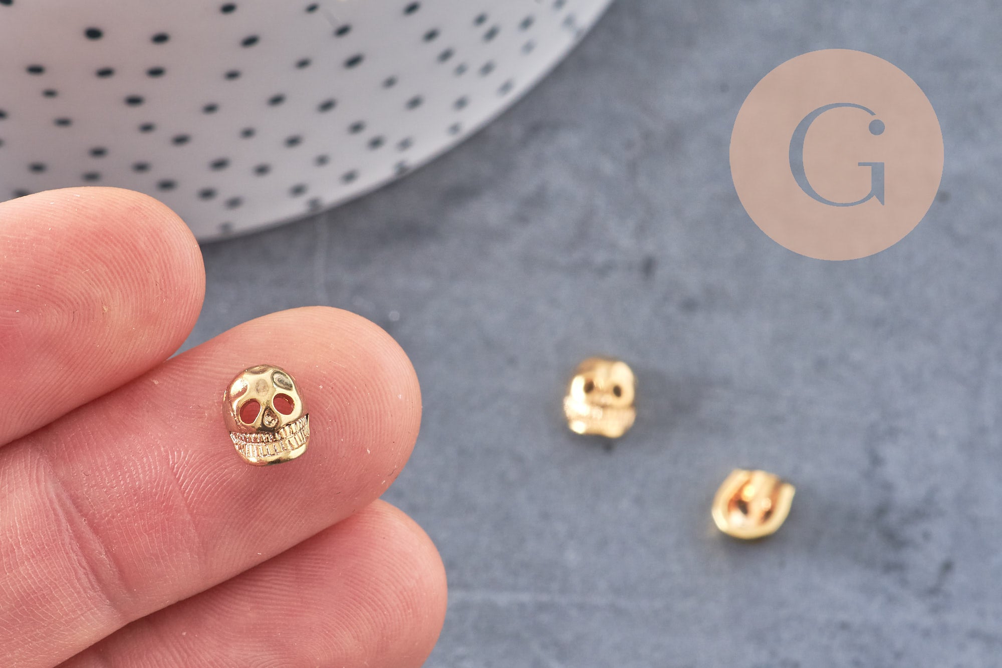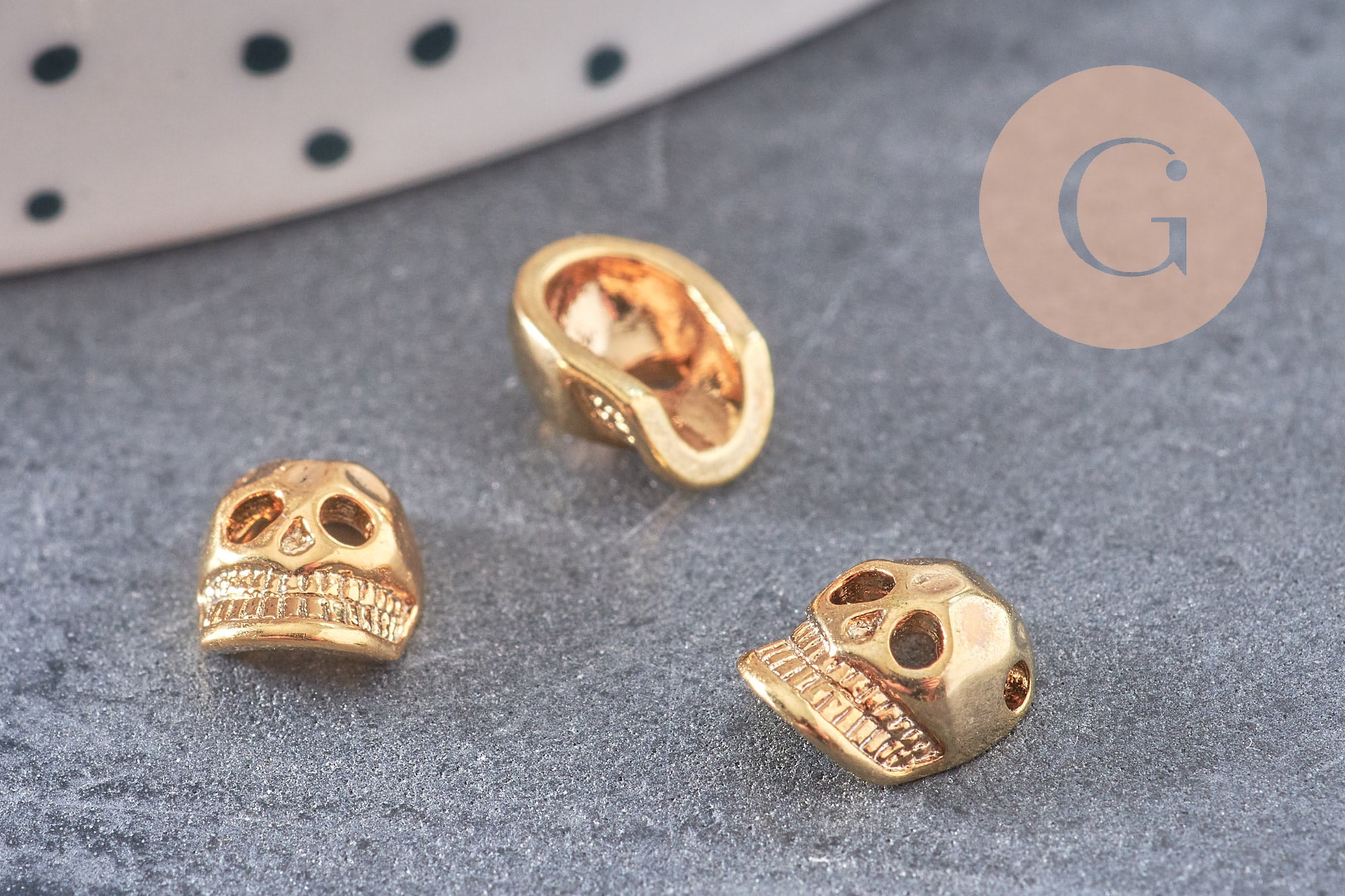 Pendentif tête de mort laiton doré 2.5microns, pendentif sans nickel,creation bijoux doré, pendentif laiton doré,9mm,lot de 2