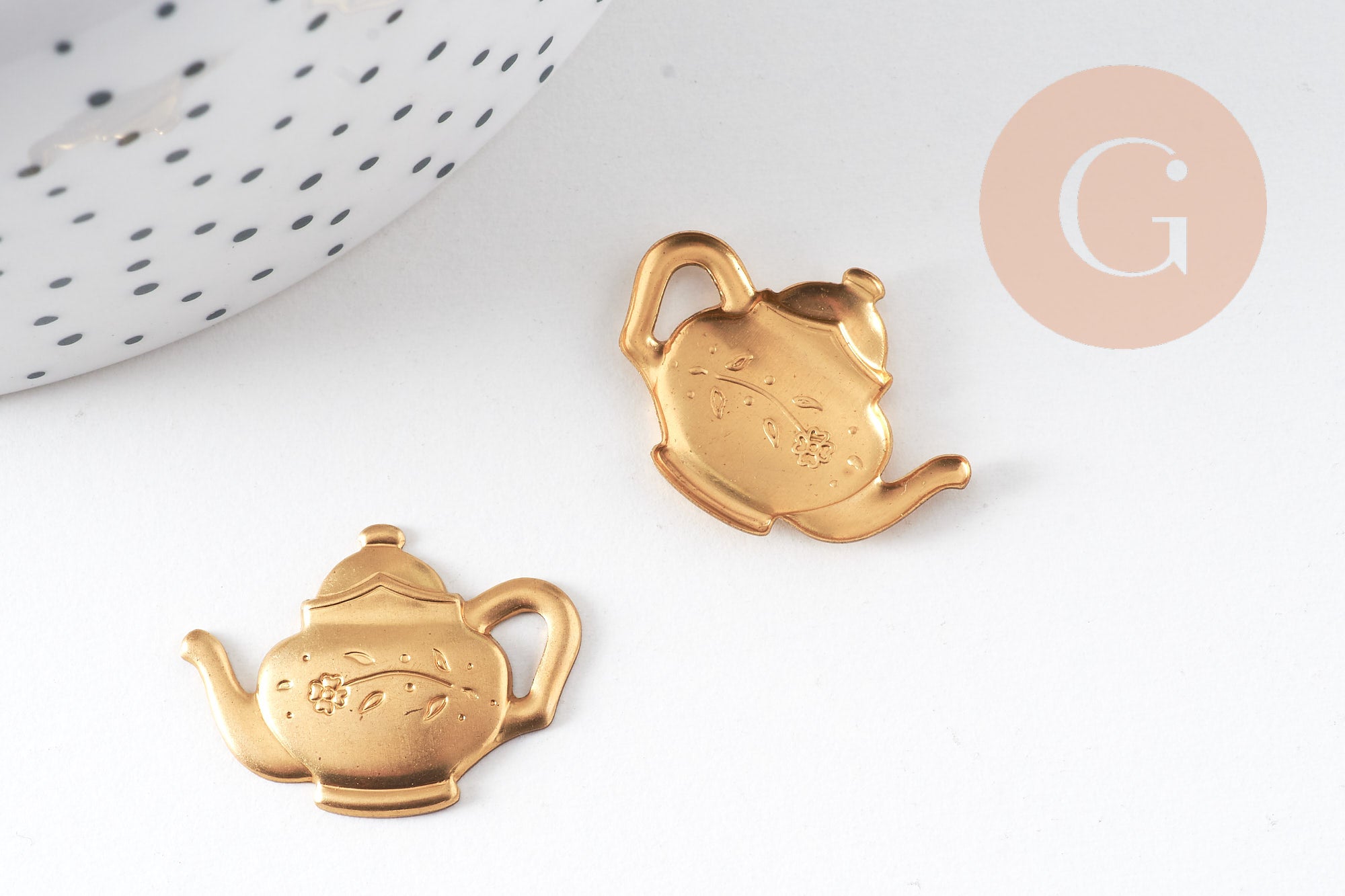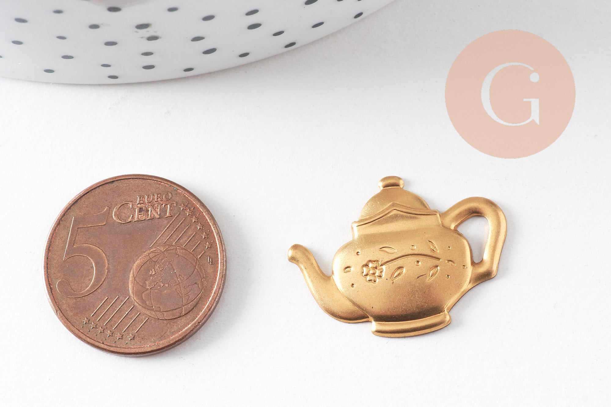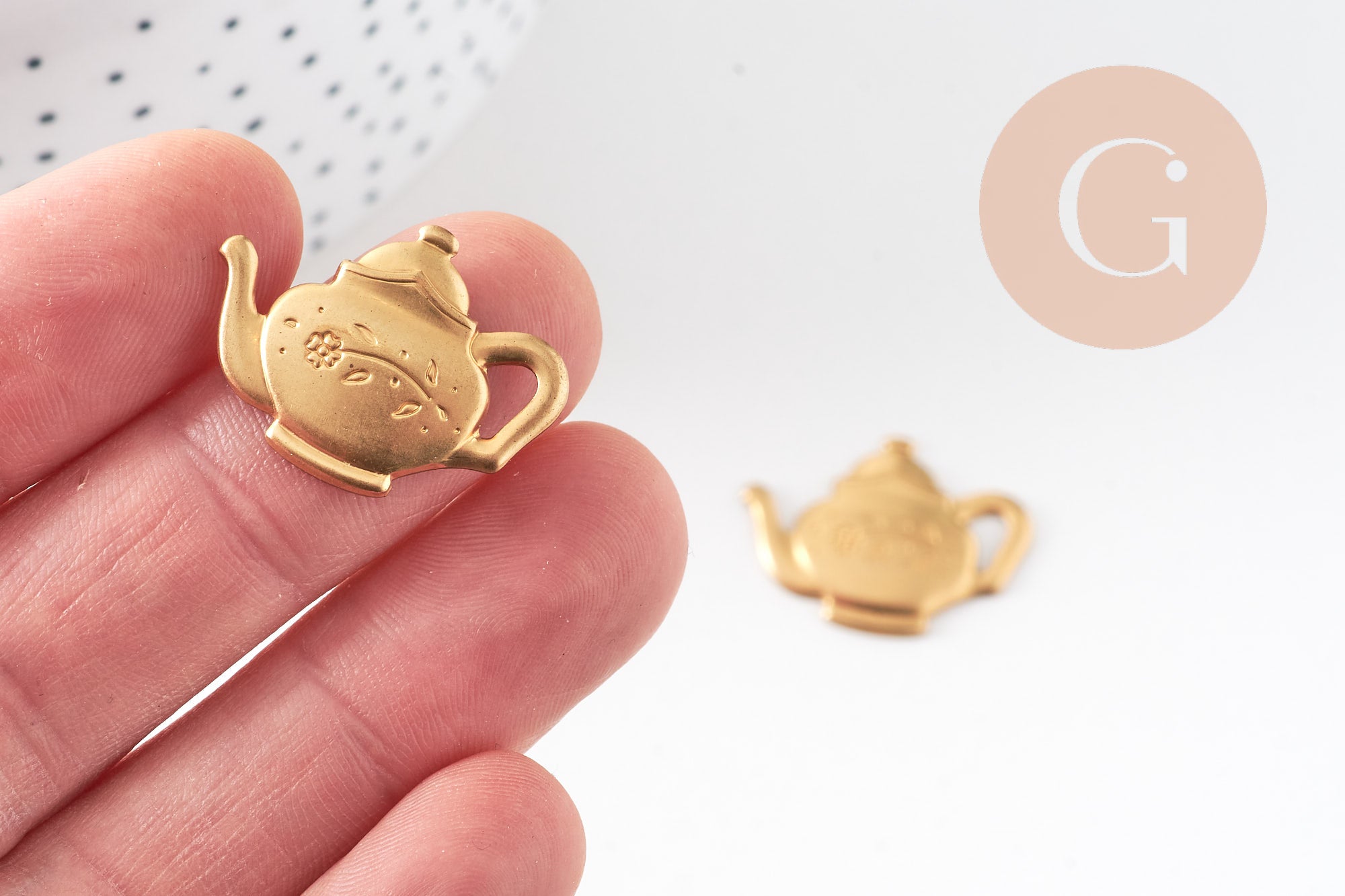 Un joli pendentif théière en laiton, idéale pour la création d'un collier sur le thème d'une tea-party, tea time ou Alice au pays des merveilles