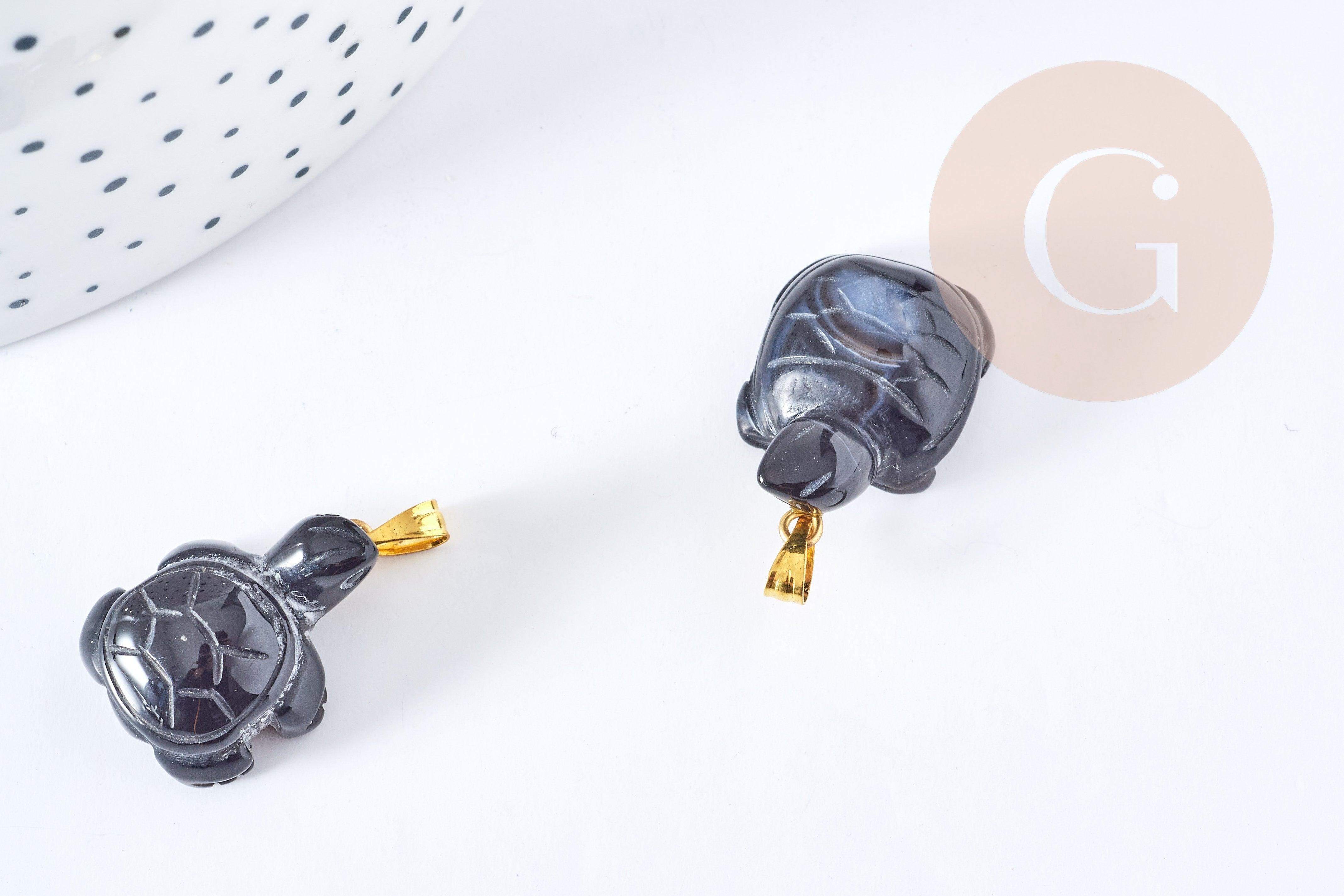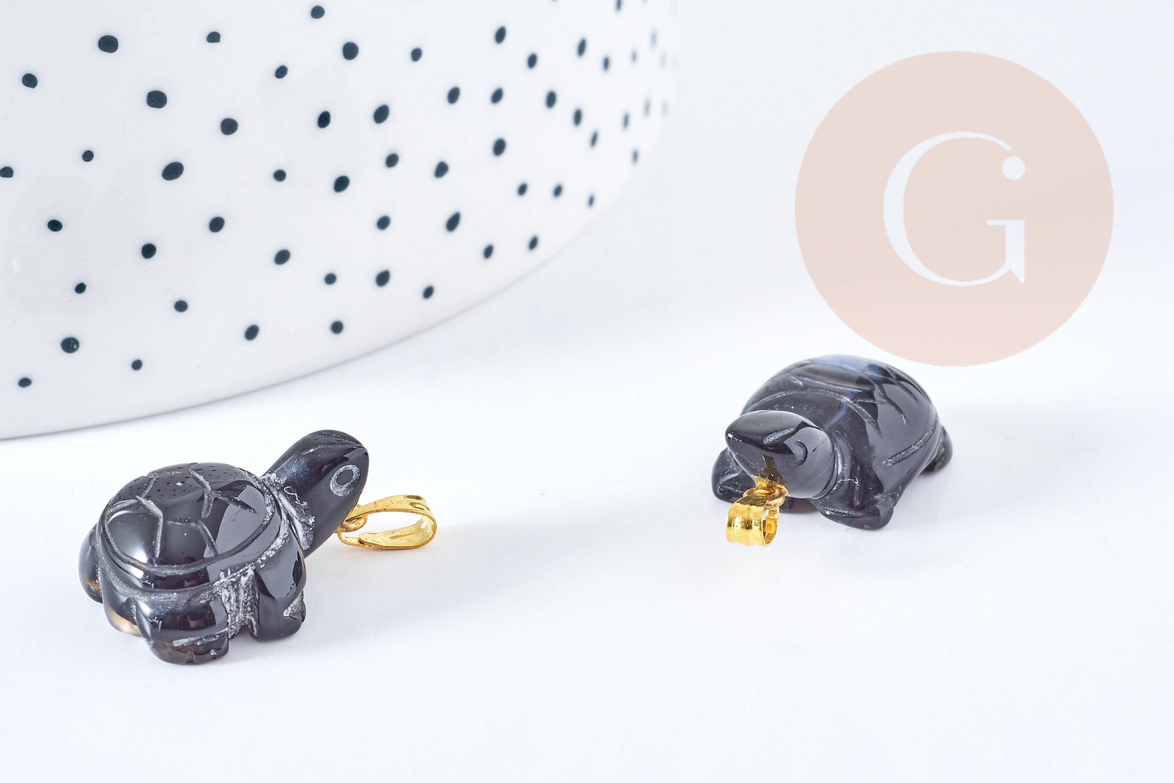 Pendentif tortue agate naturelle noire support doré 21mm, pendentif pierre création bijoux, x1, G8638