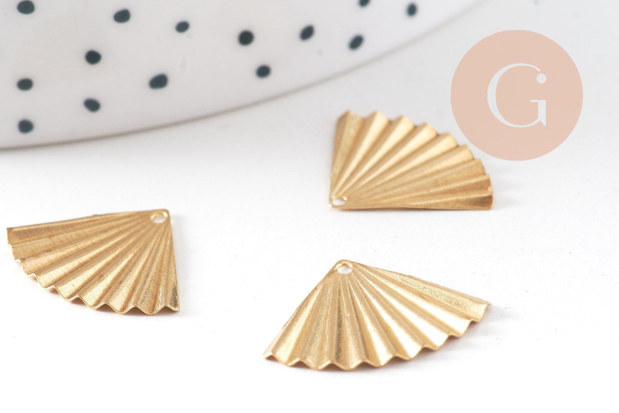 Pendentif triangle éventail plié laiton brut, apprêt doré, sans nickel, Pendentif doré,laiton brut,19mm,lot de 5