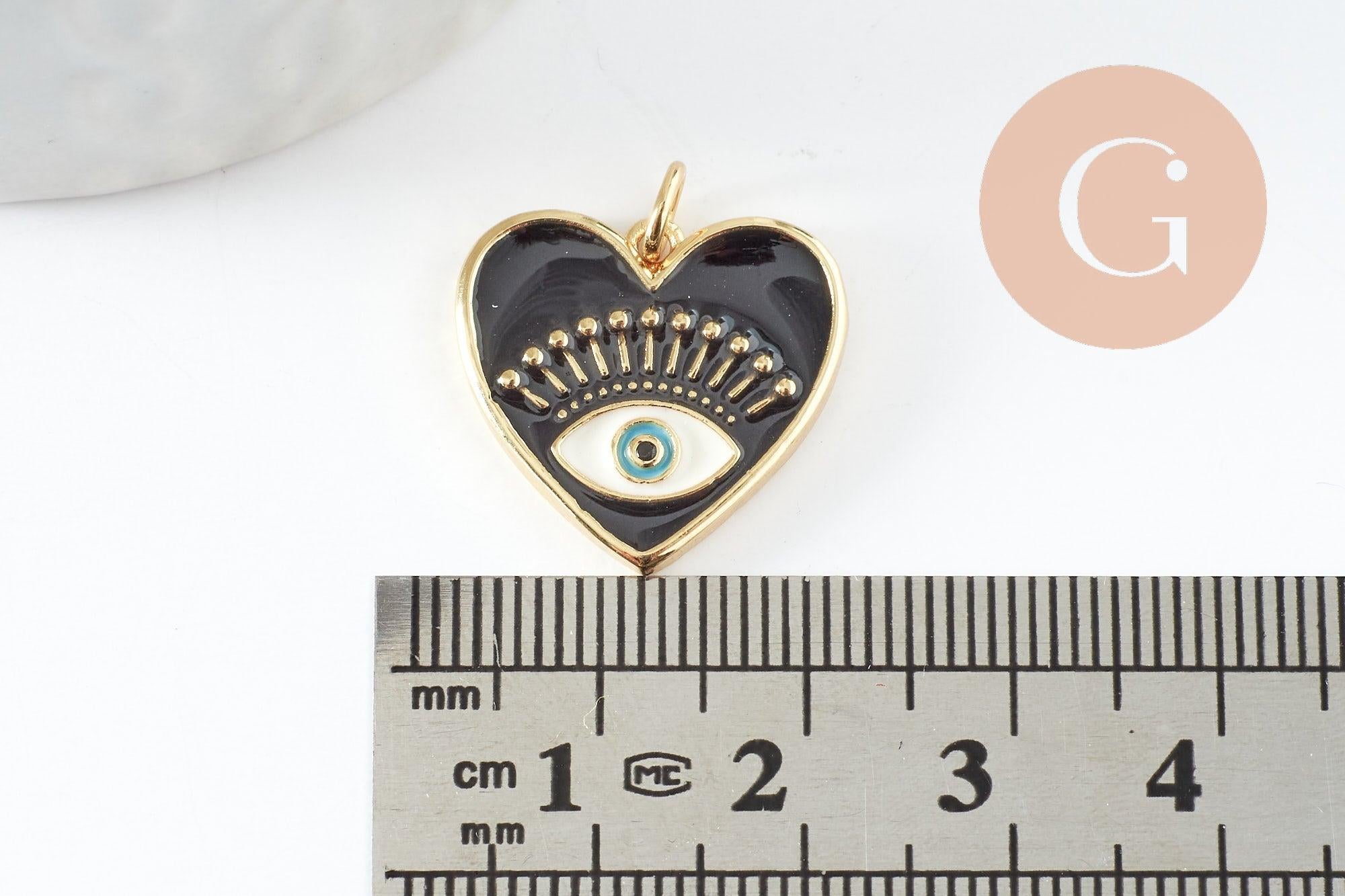 Adoptez de suite ce pendentif cœur en laiton doré 18K et émail noir, décoré d'un oeil protecteur pour créer vos petits bijoux d'amour : idéaux pour créer boucles et colliers