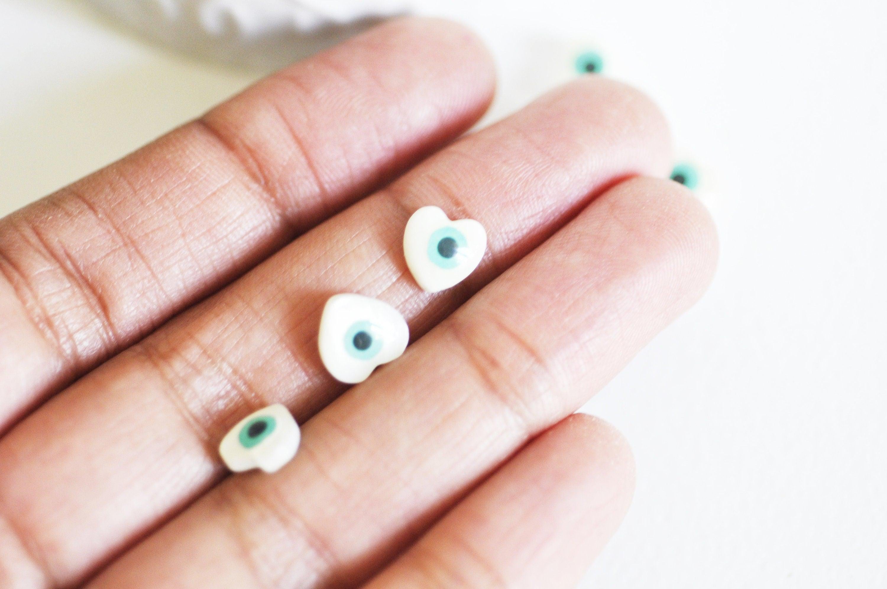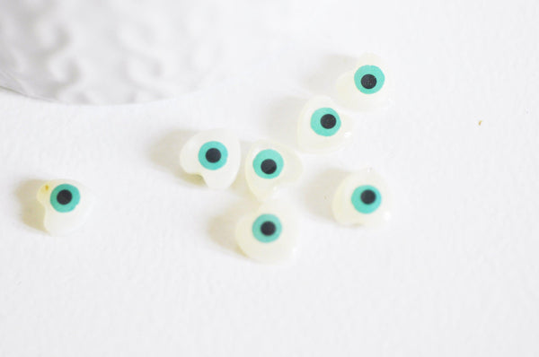 Perle coeur nacre blanche mauvais oeil, fournitures créatives,chance, cabochon nacre, gri-gri,8.5-9mm ,lot de 10