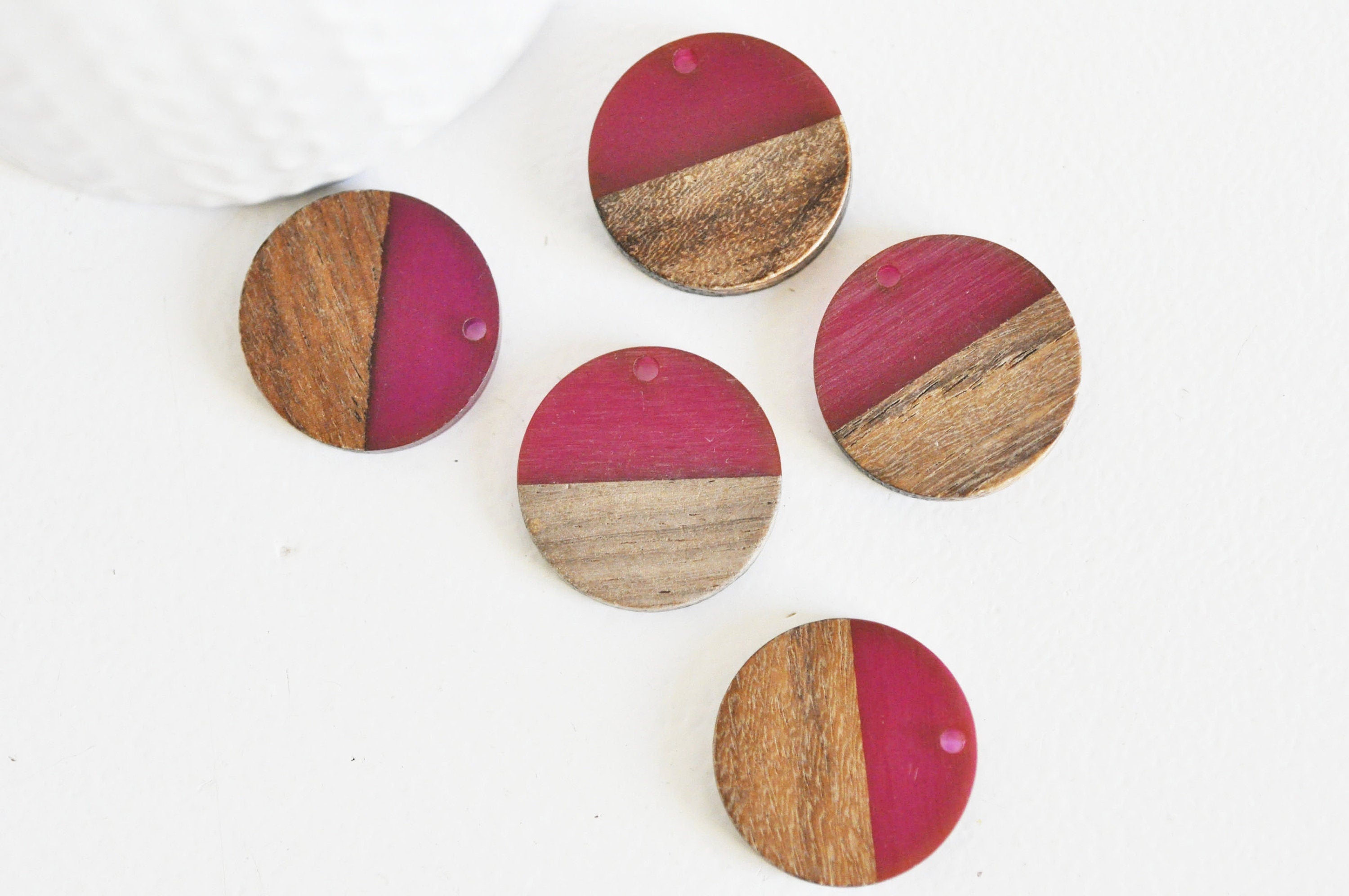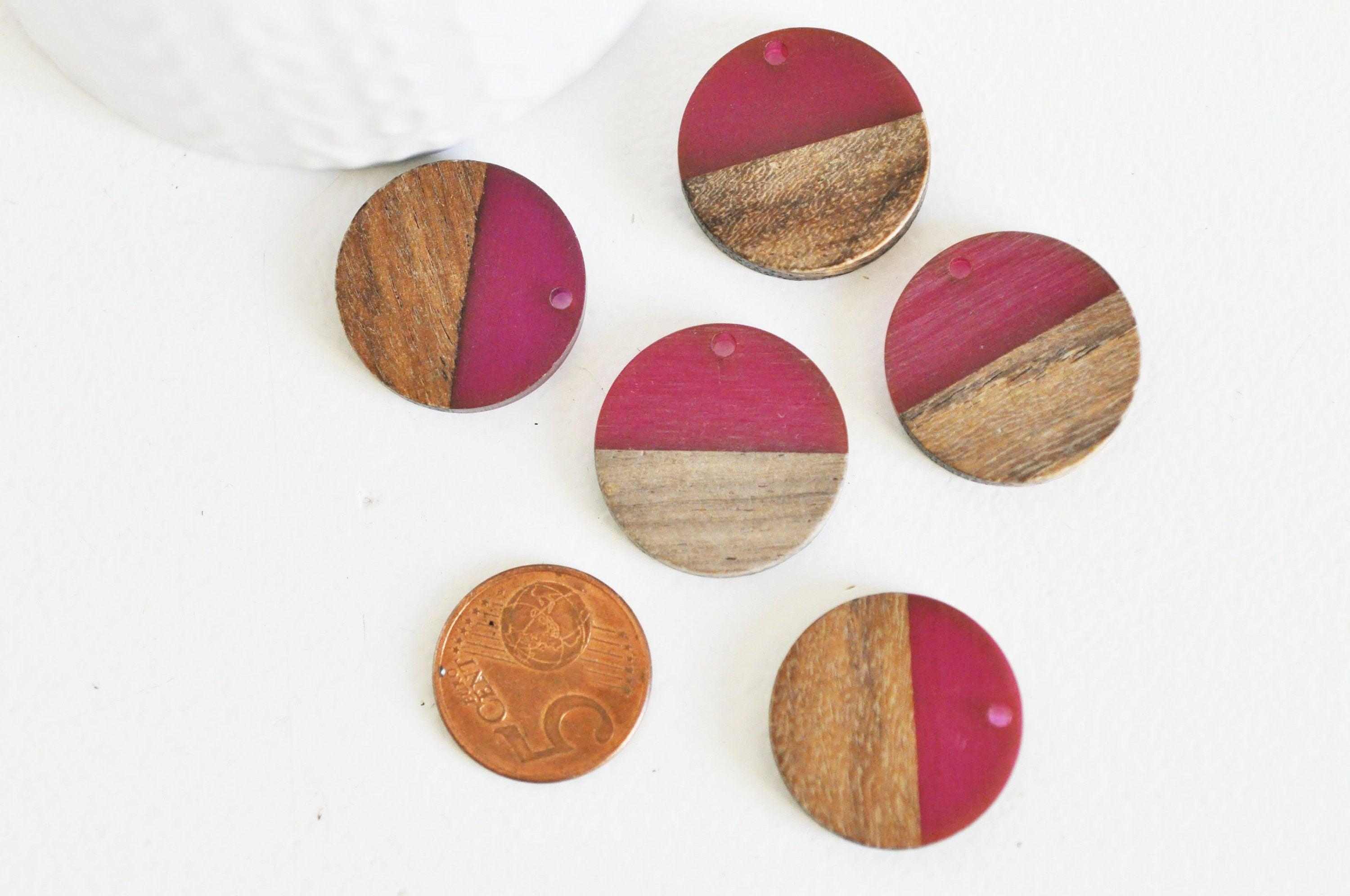 pendentif disque bois résine prune,bois naturel,perles bois,Perle géométrique,perle ronde,perle ronde bois,25mm,x5 G4639