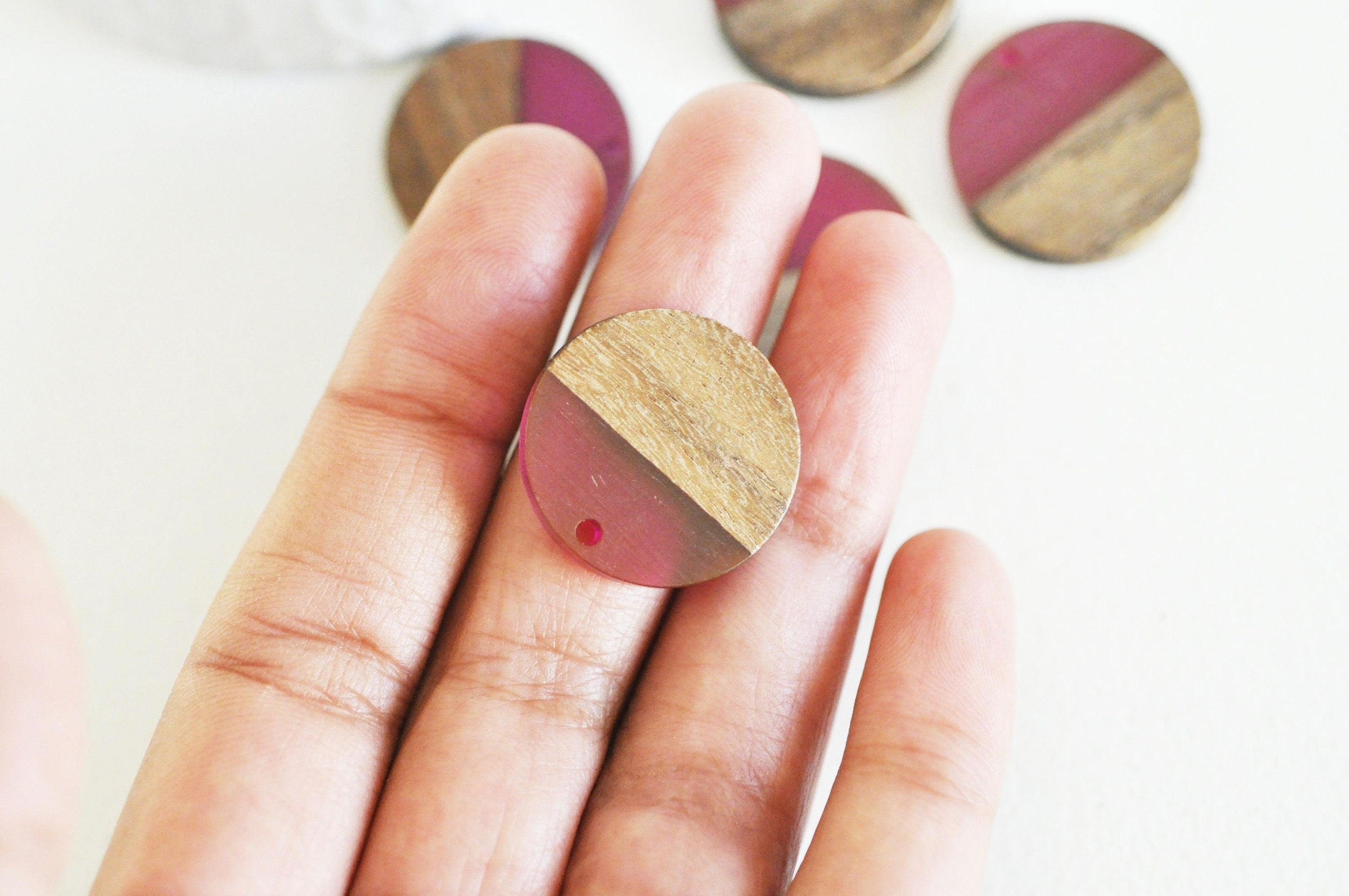 Ces perles en bois naturel avec une résine translucide prune sont des éléments de création parfaits pour les bijoux à thème naturel ou géométrique. Leur forme de disque de 25mm de diamètre leur permet de se combiner avec d'autres perles en bois ou en métal pour créer des colliers, bracelets et boucles d'oreilles uniques.