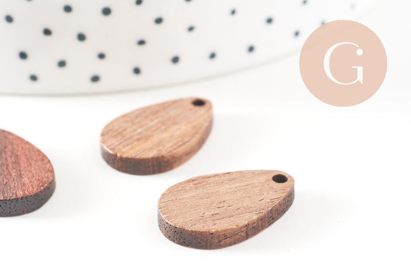 Perle goutte bois, bois naturel, Perle géométrique,perle goutte,création bijoux bois,21mm, x5 G2546