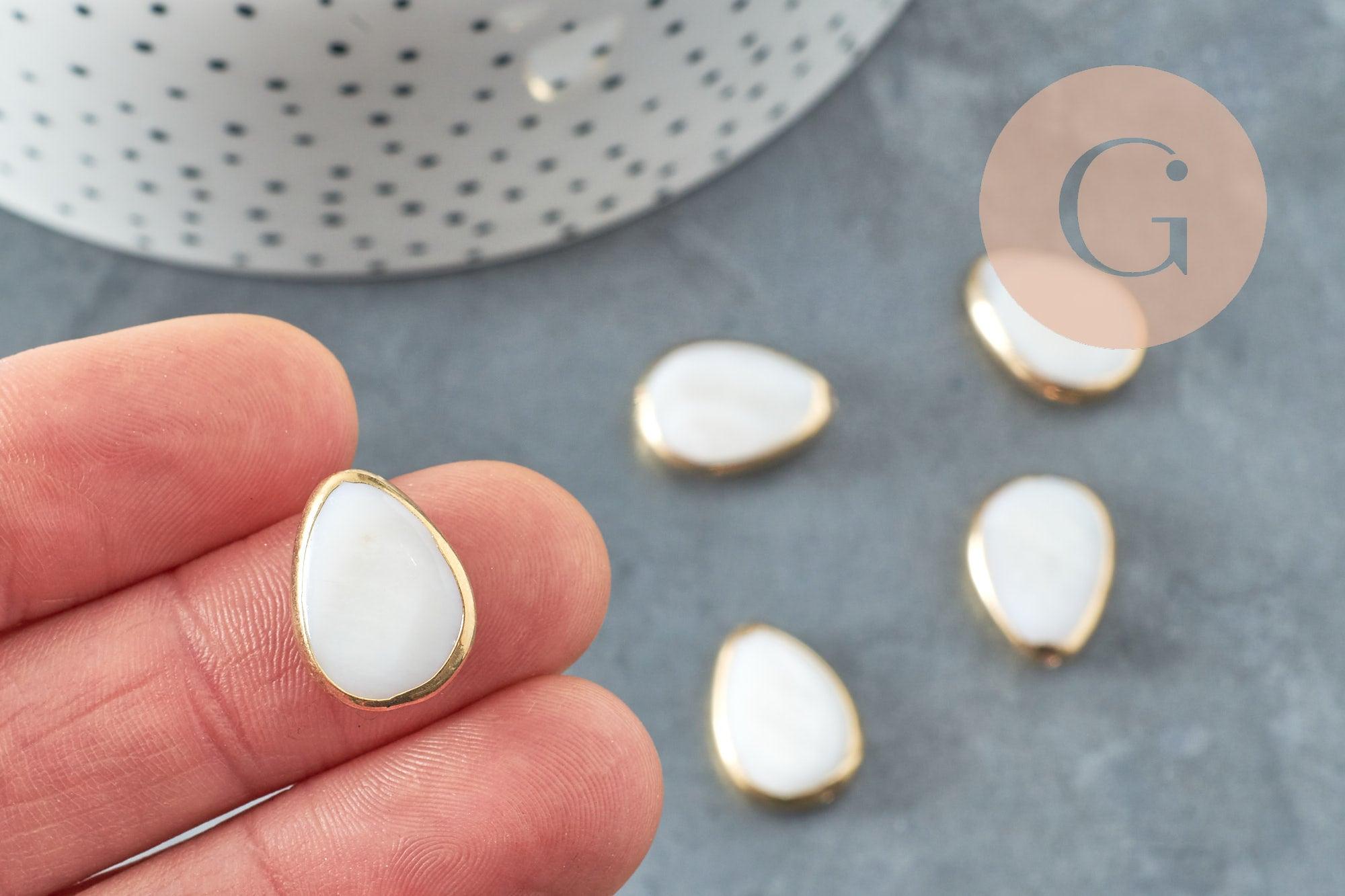 Ajoutez une touche élégante et marine à vos créations avec ce lot de 5 perles en nacre blanche naturelle, taillées en forme de goutte et cerclées d’un délicat liseré doré. Leur éclat nacré apporte une lumière douce et raffinée à vos bijoux DIY, tandis que leur double perçage permet des montages originaux, aussi bien en collier qu’en bracelet ou en boucles d’oreilles.