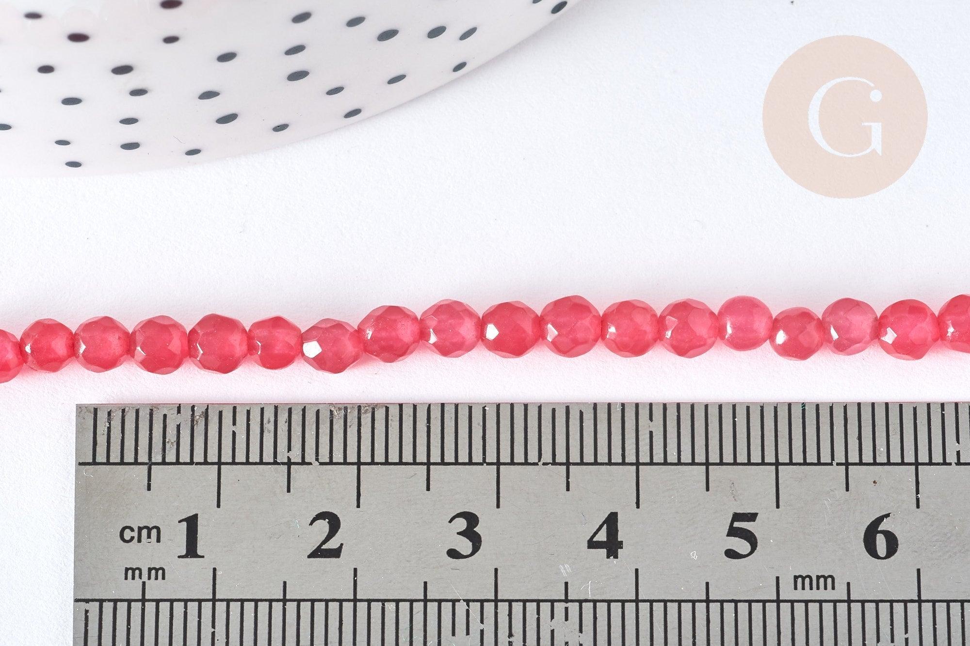 Perle jade rose vif facettée,pierre naturelle,pierre,perle facette,jade,4mm,fil de 37 cm x1 (G5189)