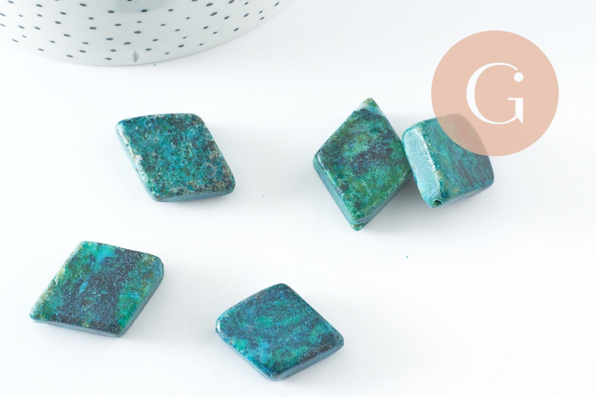 Perle en turquoise naturelle verte, en forme de losange.
