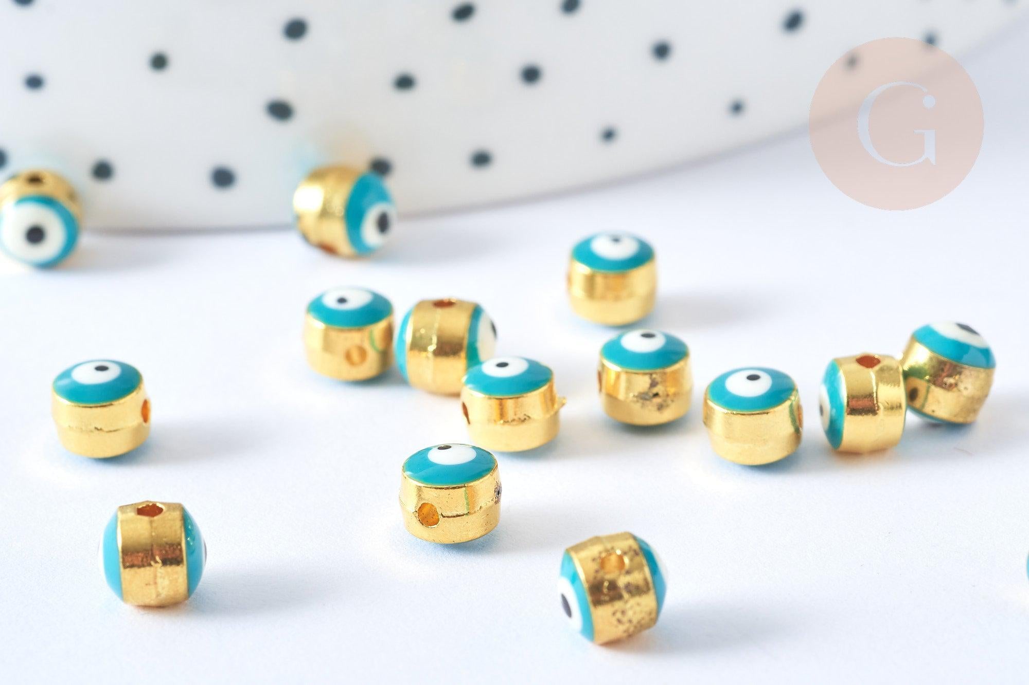 Adoptez cette perle mauvais œil en laiton émaillé en turquoise pour vos créations bijoux DIY. Vous pourrez fabriquer des colliers, des bracelets, des boucles d'oreilles, des bijoux pour téléphone portable.
