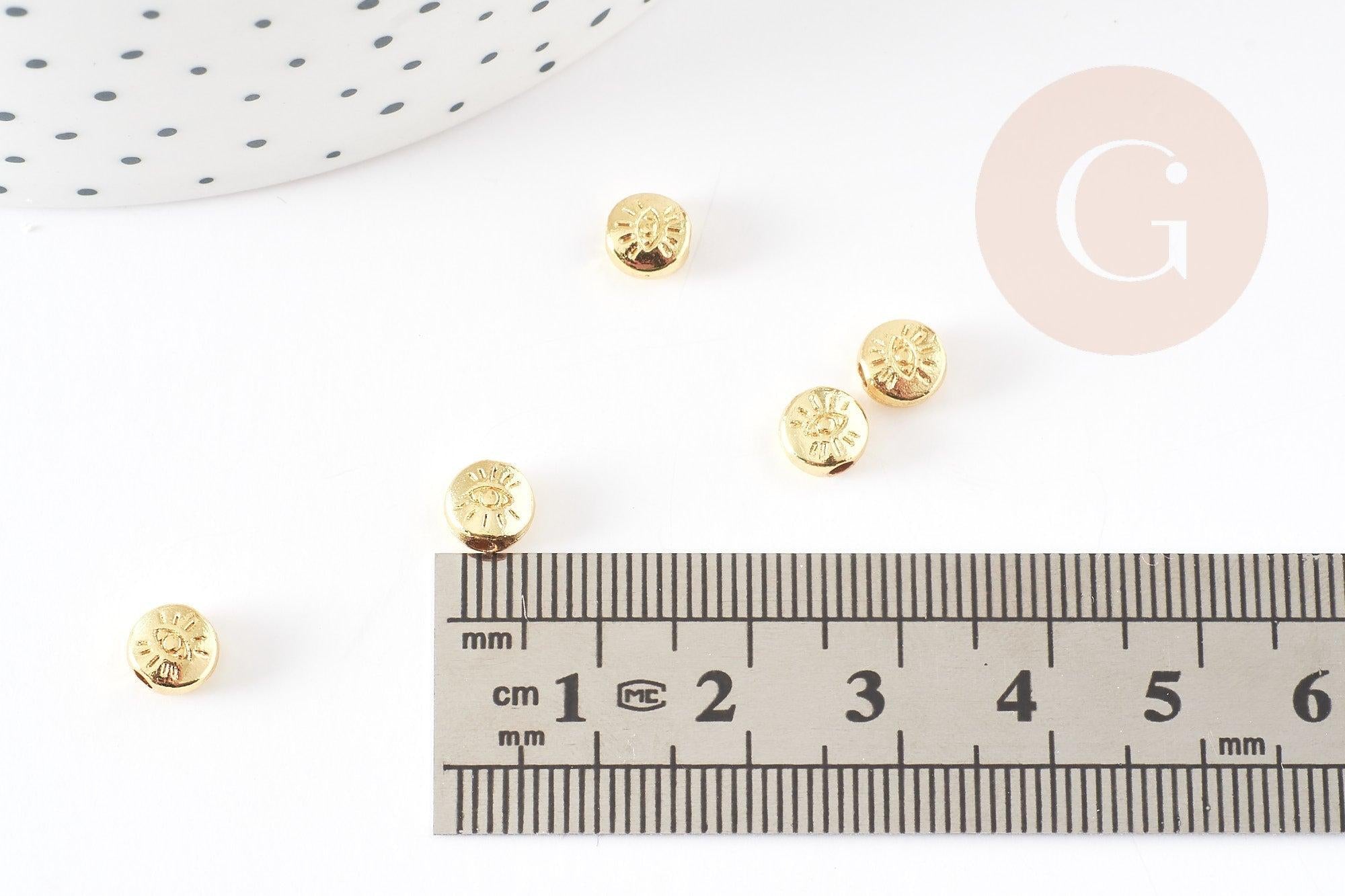 Apportez une touche protectrice et symbolique à vos créations avec ces jolies perles rondes en zamac doré, finement gravées du symbole du mauvais œil. Ces perles porte-bonheur allient élégance et spiritualité, parfaites pour confectionner des bijoux à la fois raffinés et chargés de sens.