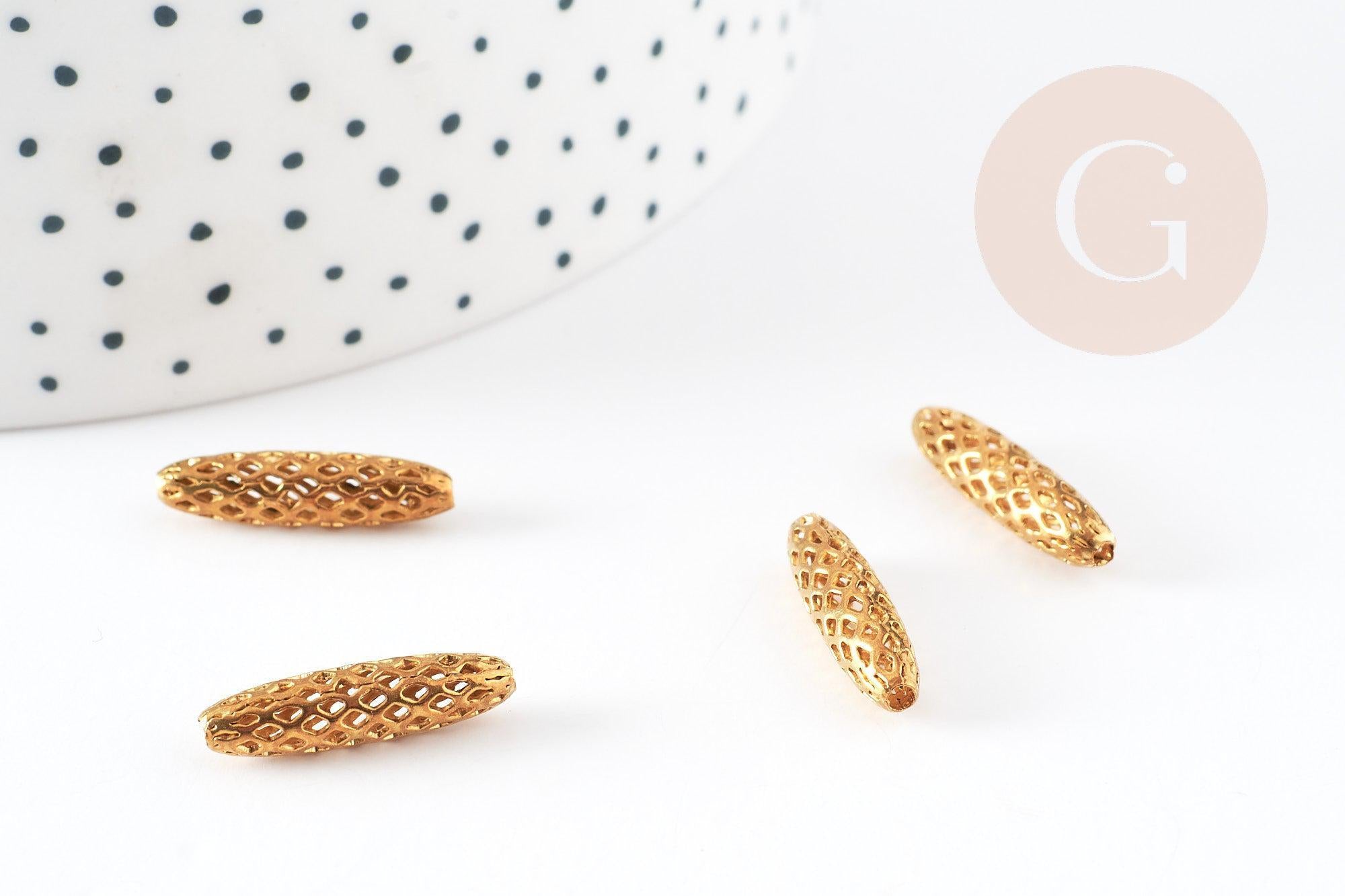 Un lot de 5 perles ovales en résille laiton brut. Des apprêts pour vos colliers,bracelets et sautoirs.