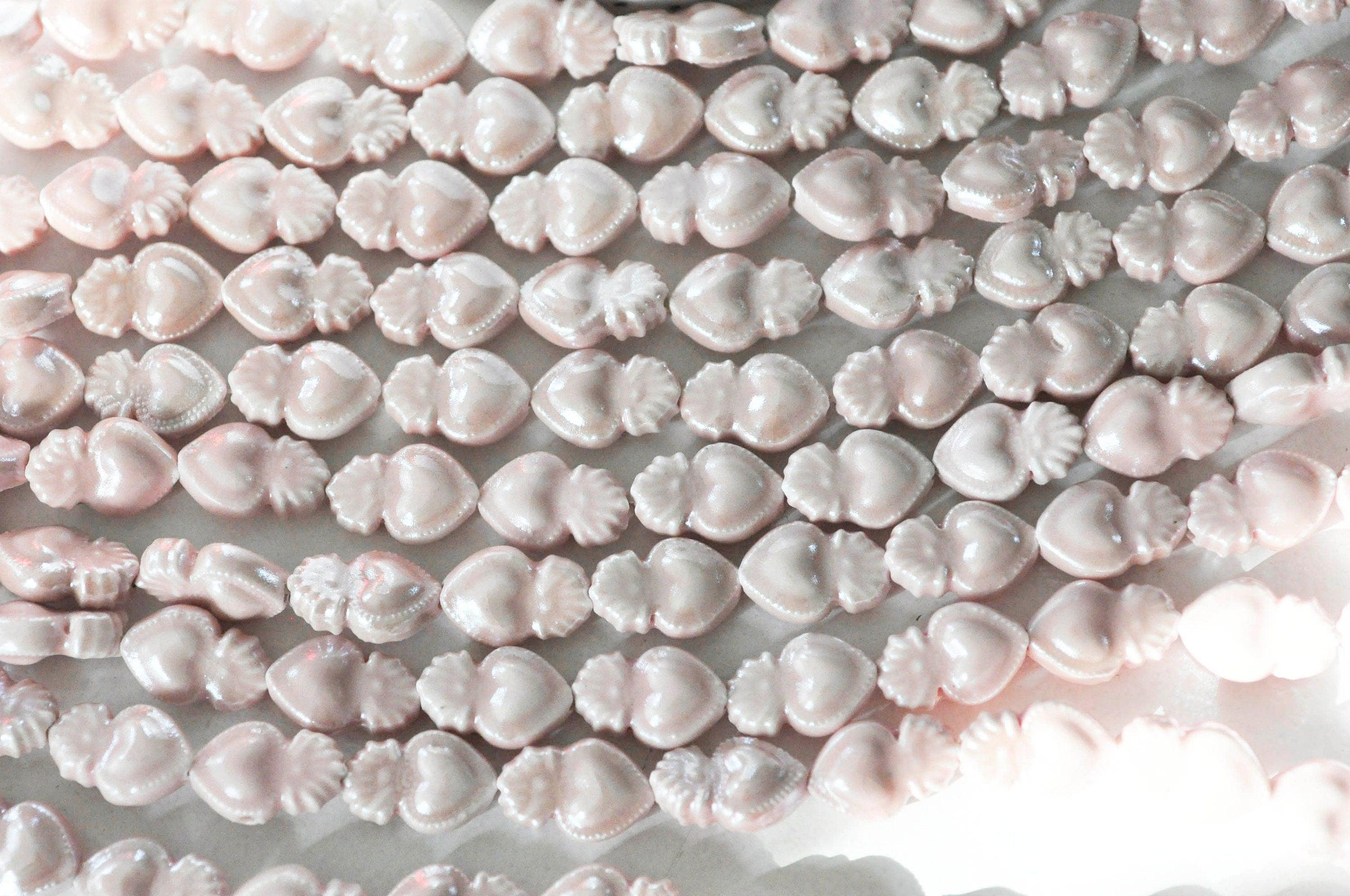 Craquez pour ces perles en porcelaine faite à la main, d'une finition rose clair. Celles-ci sont composées d'un cœur bombé surmonté de flammes, elle désigne un ex-voto cœur sacré mexicain. Laissez votre imagination sortir afin de confectionner une multitude de...