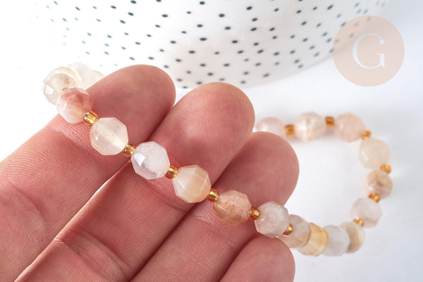 Craquez pour ces perles rondes facettées en agate de fleur de cerisier couleur nude-grise, avec lesquelles vous pourrez fabriquer de nombreux bijoux fantaisie DIY.