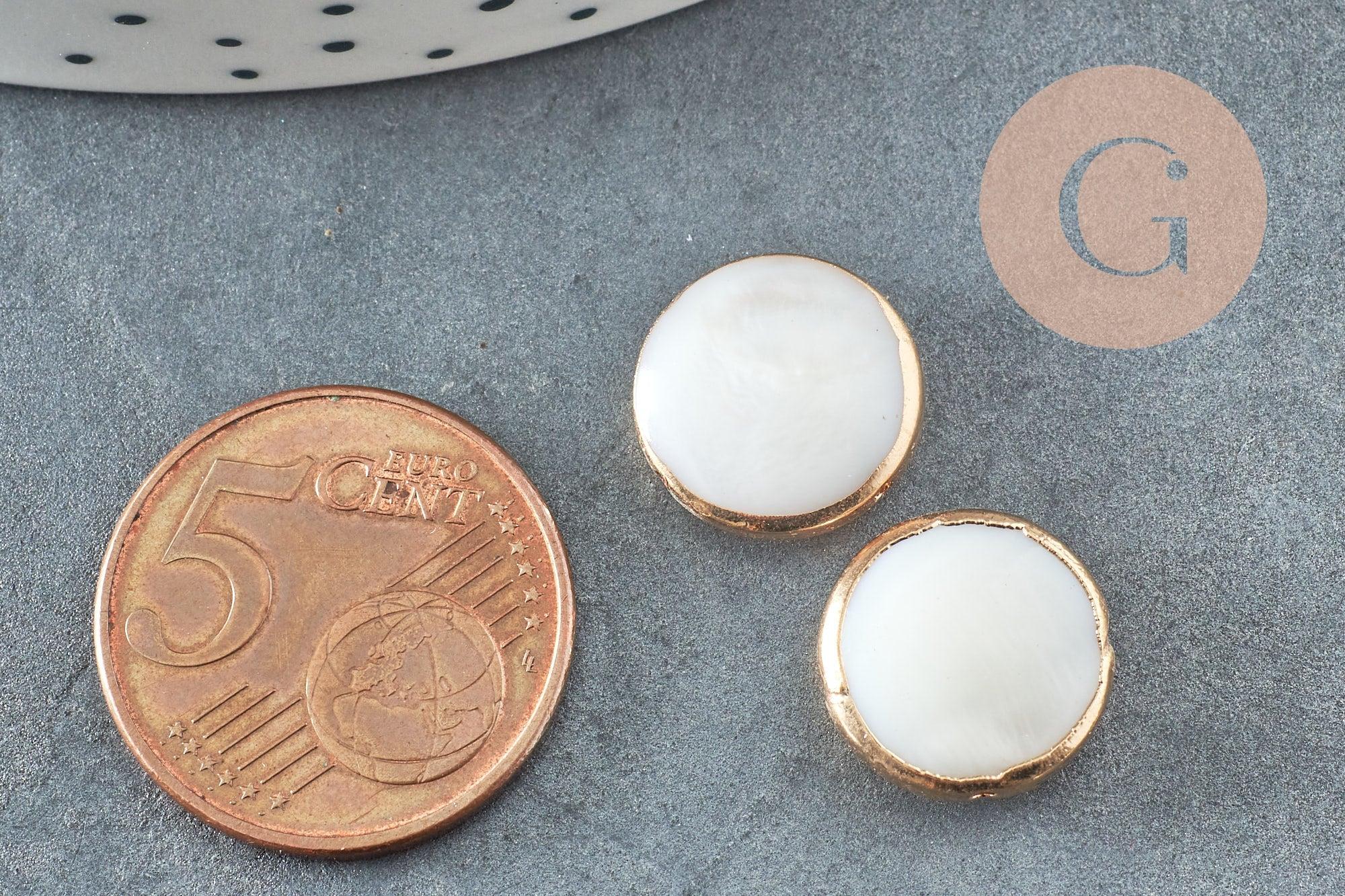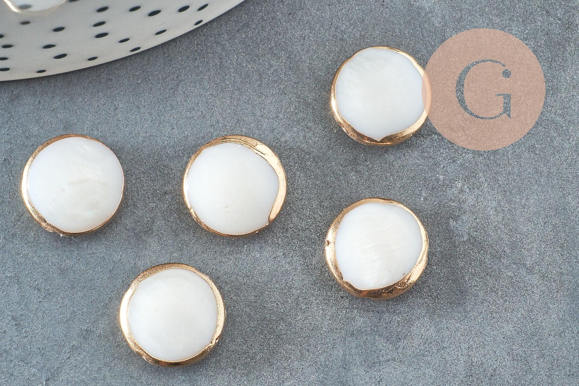 Craquez pour ces perles disque en nacre naturelle sur un support Doré.