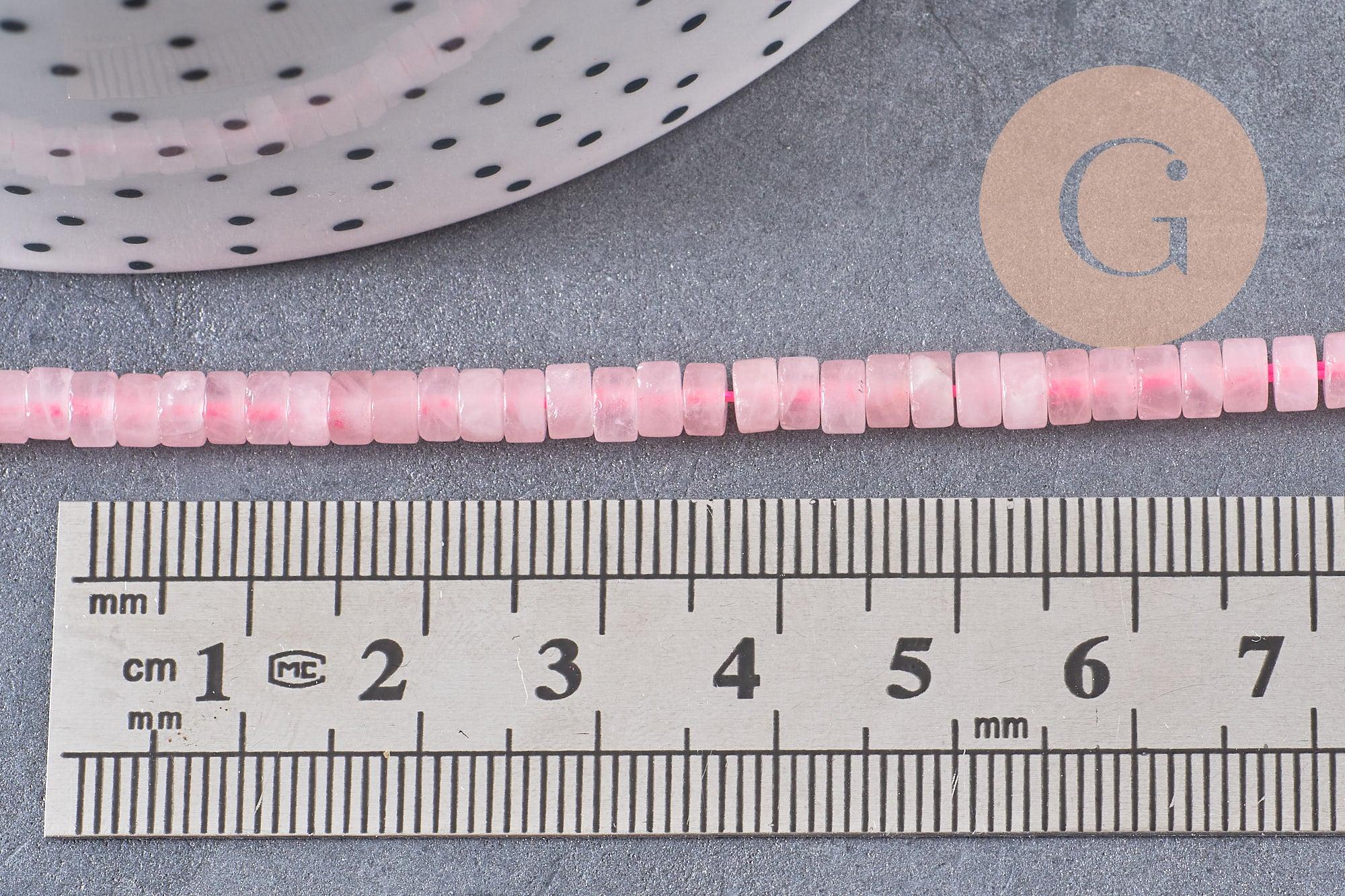 Perle rondelle heishi quartz rose, quartz rose naturelle, perle pierre, 4.5mm,fil de 160 perles, x1 (G2702)