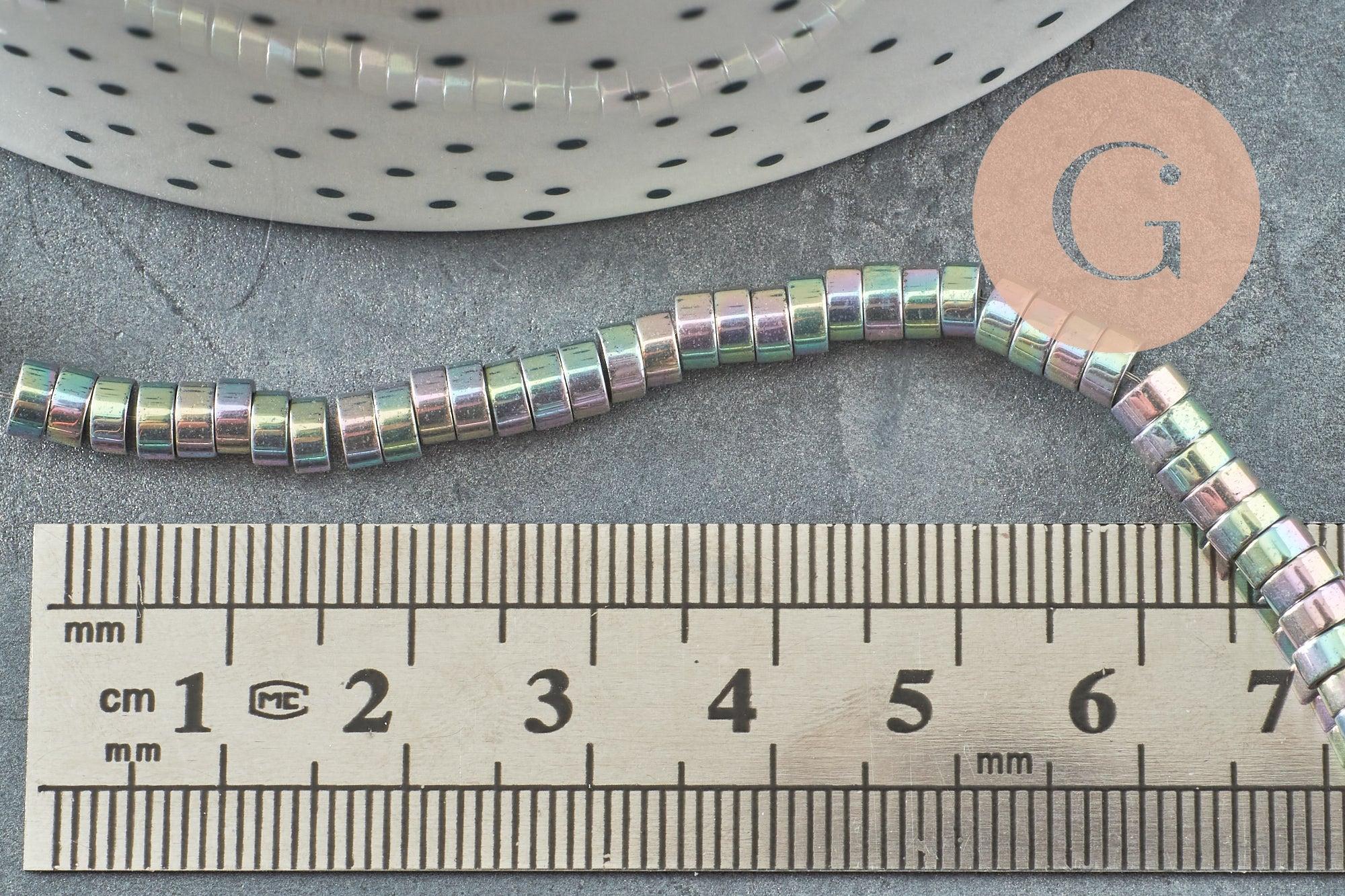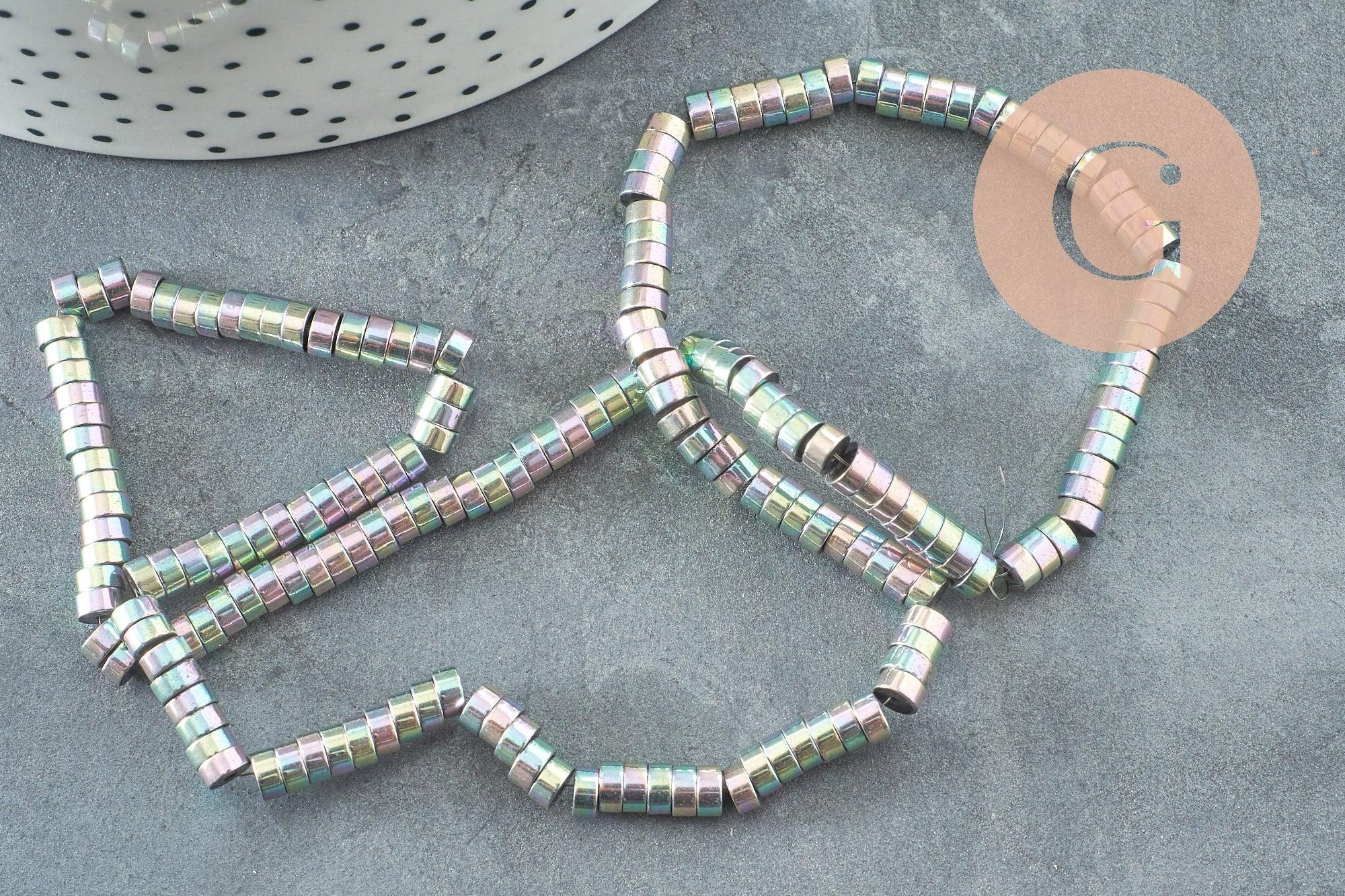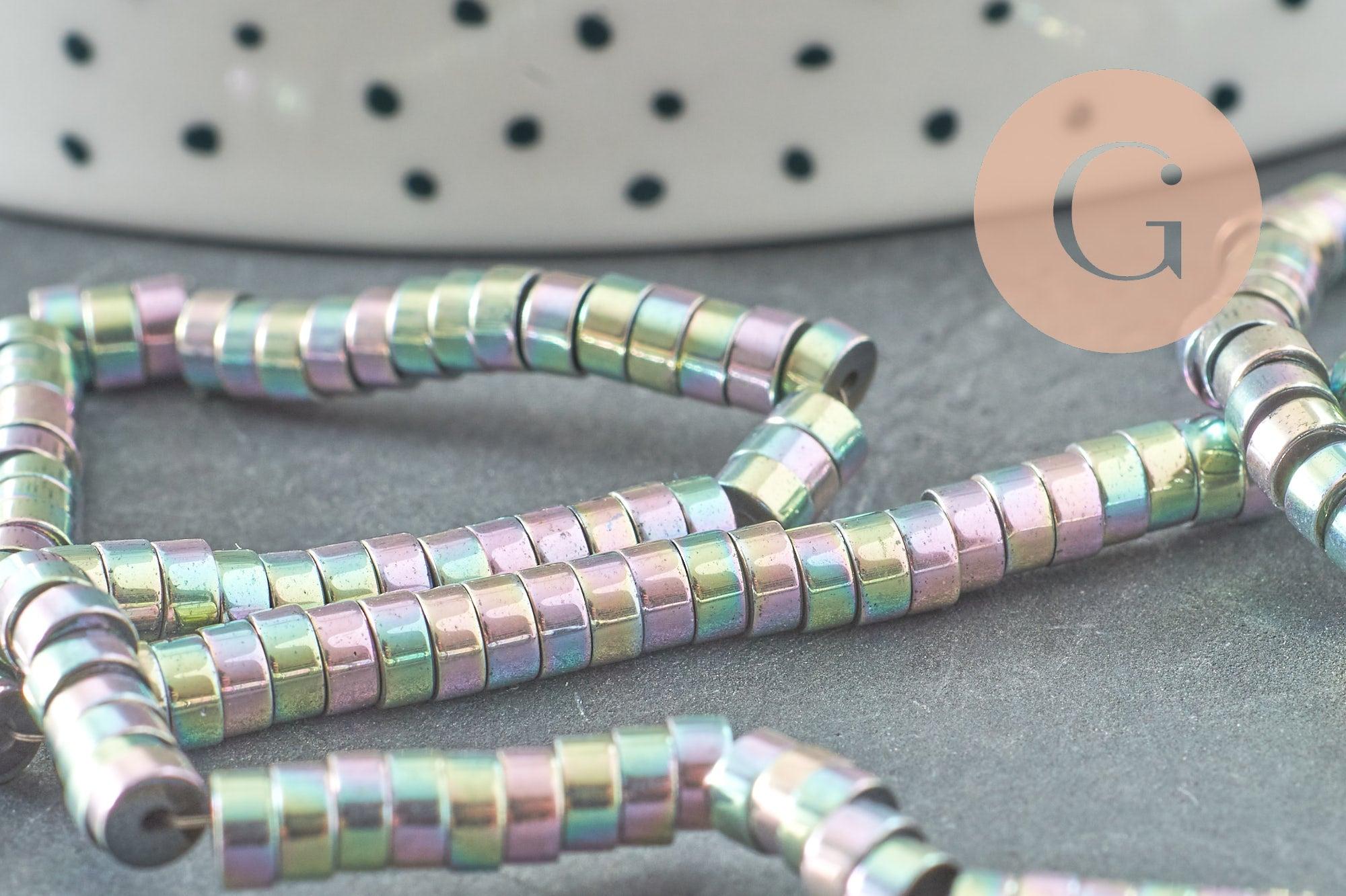 Perle rondelle hématite multicolores pastels 4mm, perle hématite,création bijoux,fil de 190, X1 perles (G3625)