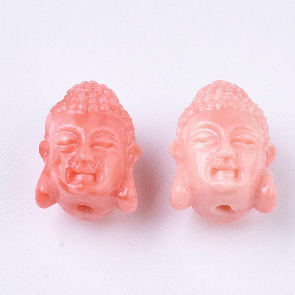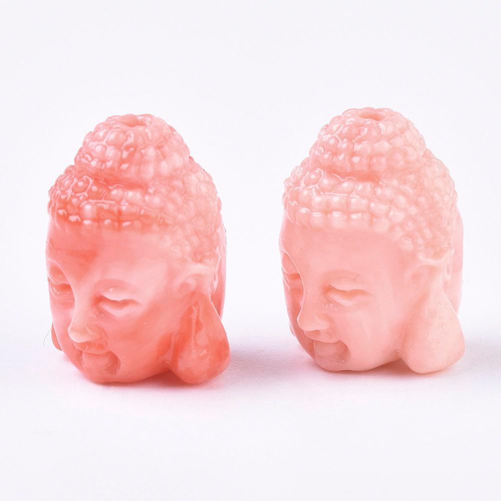 perles en résine imitation corail teinté en rose corail sur le thème du boudha