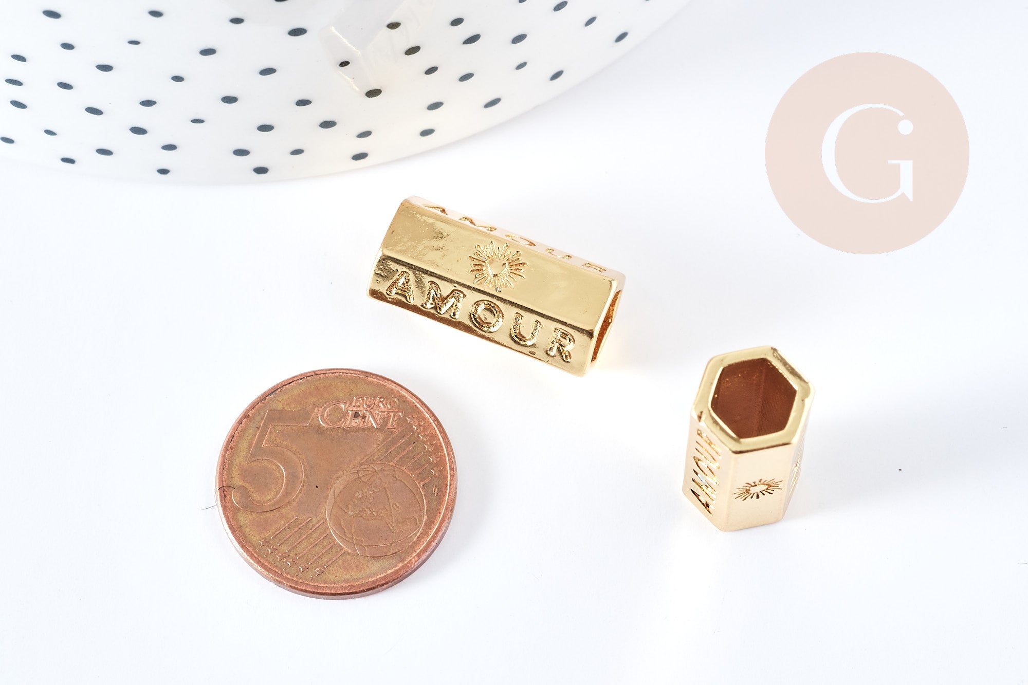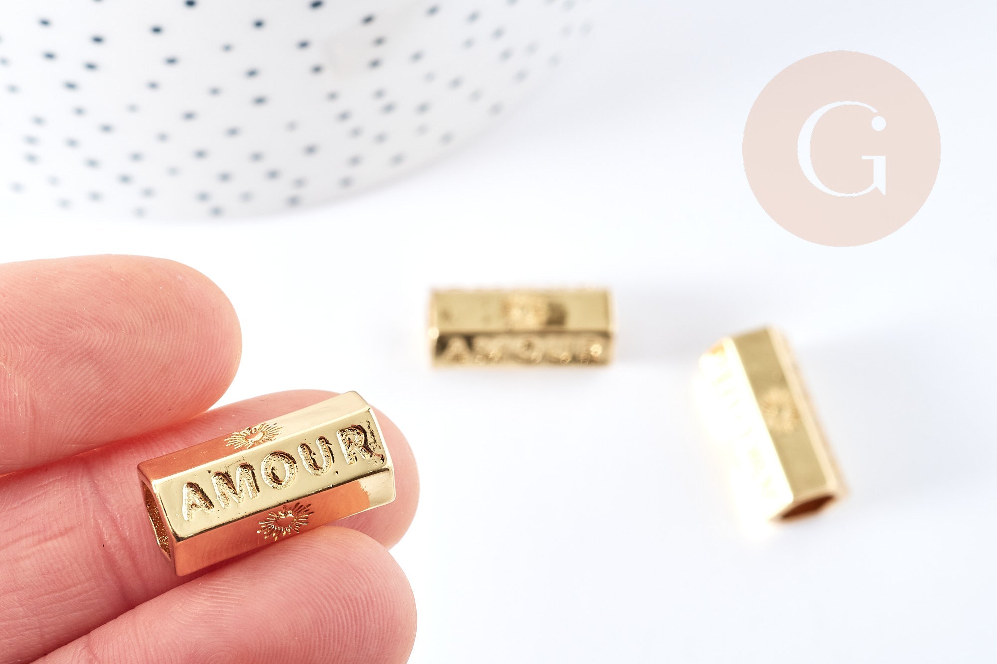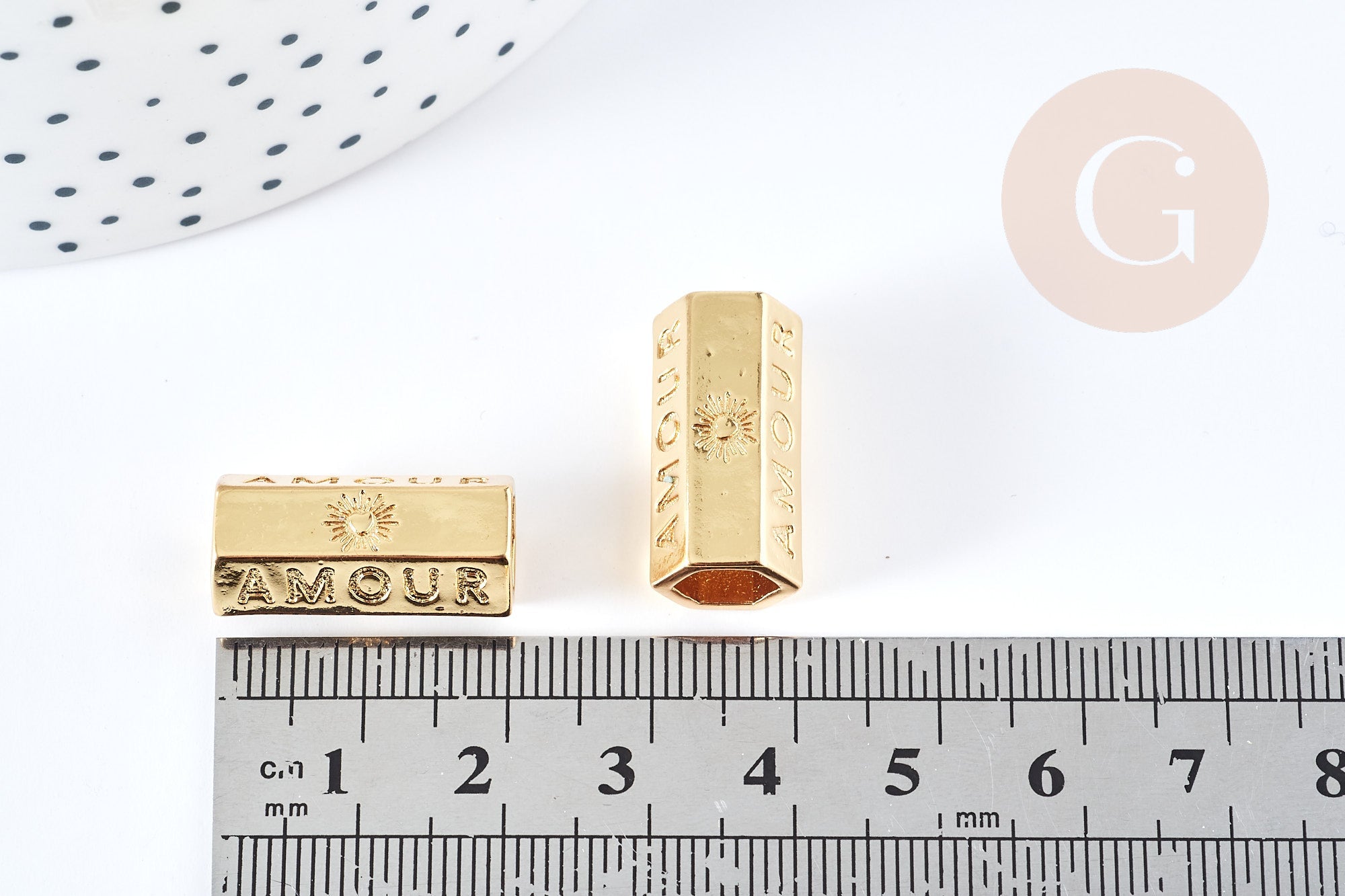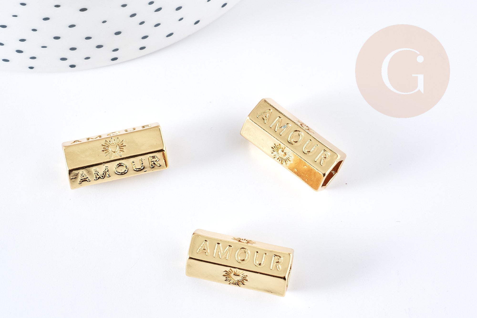 Imaginez un bijou DIY personnalisé avec cette perle tube breloque décorée d'un message d'amour sur les différentes faces de la perle : AMOUR