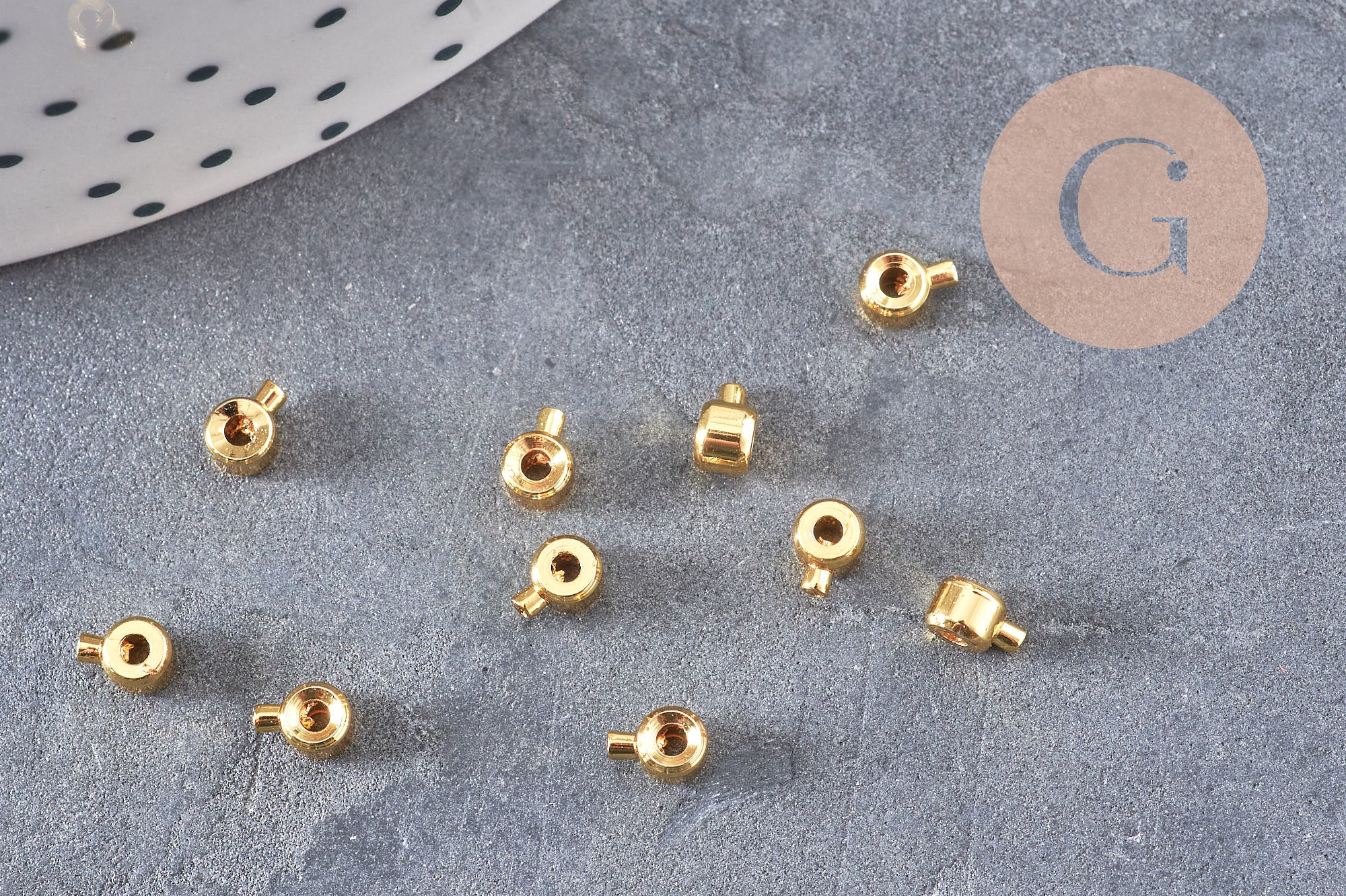Ces perles à écraser tube 2 en 1 en laiton finition platine ou dorée allient esthétique et praticité. Elles assurent une fixation solide de vos fils tout en offrant un rendu discret et raffiné sans avoir besoin de cache-noeud.