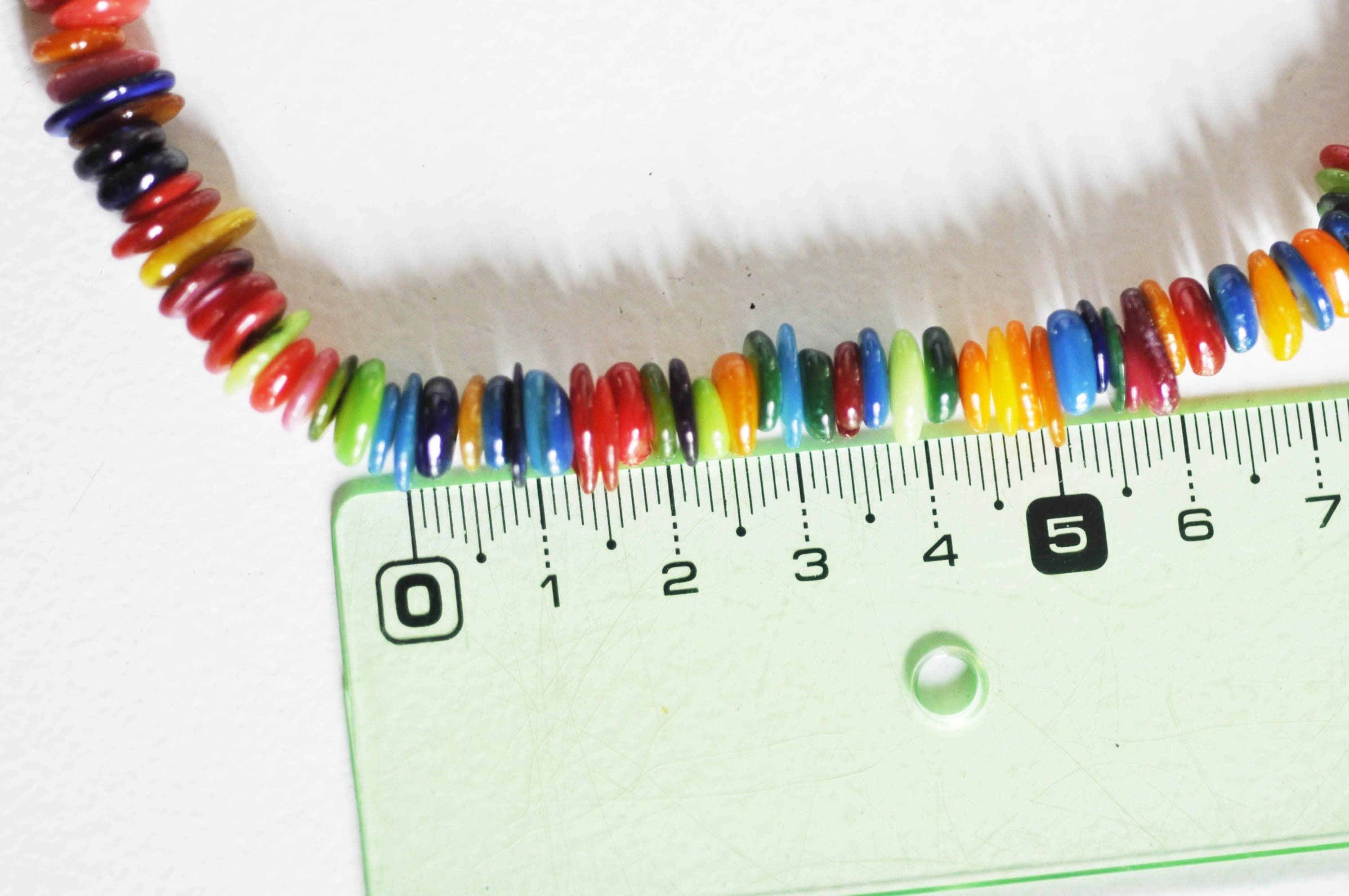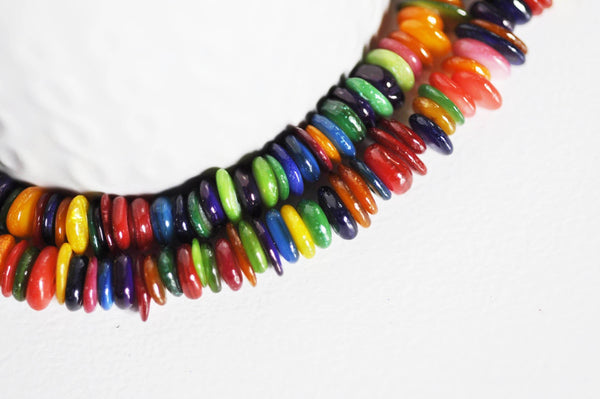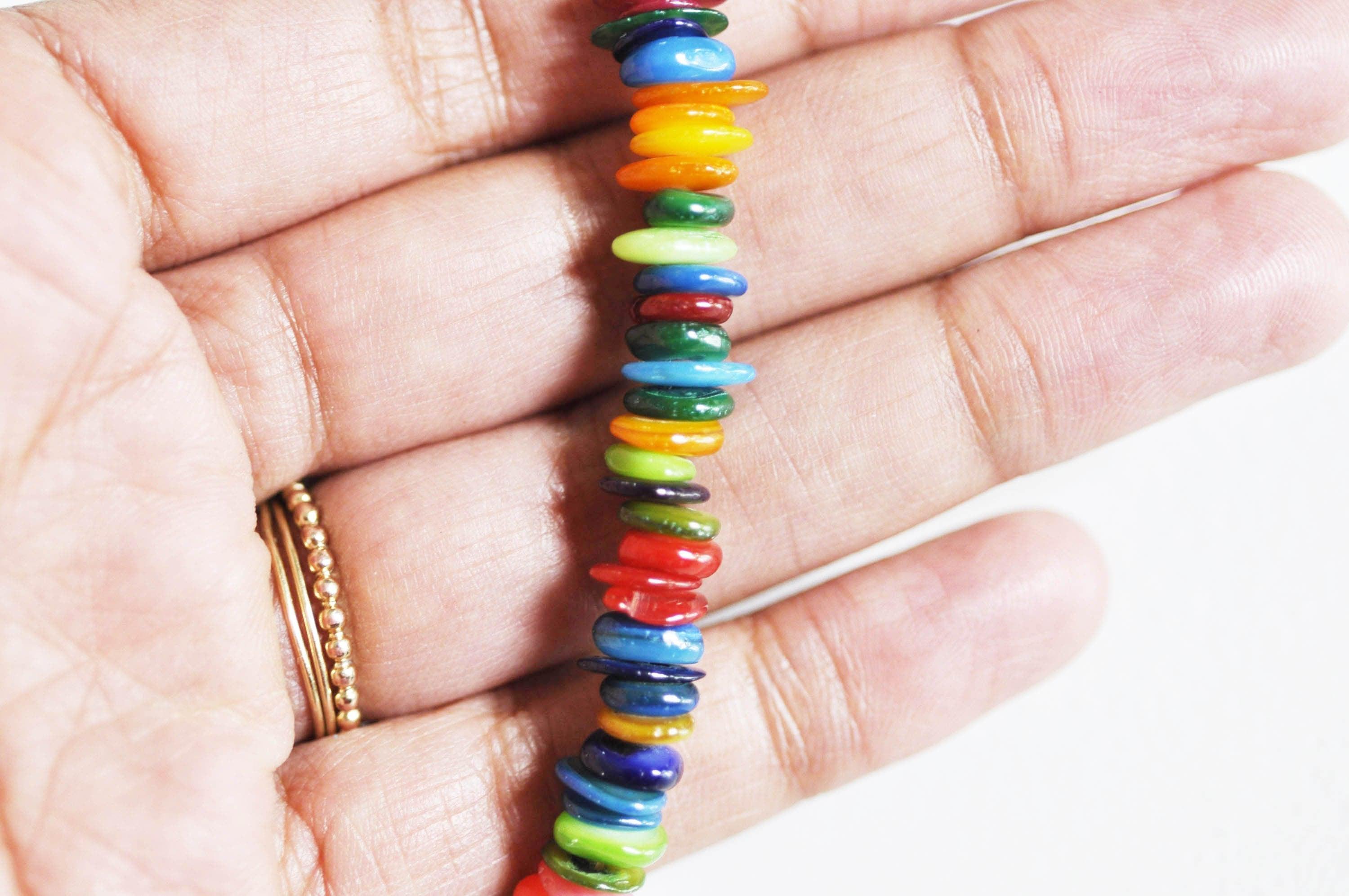 1 fil complet de perles en coquillage naturel teinté multicolore - chips de coquillage teinté.