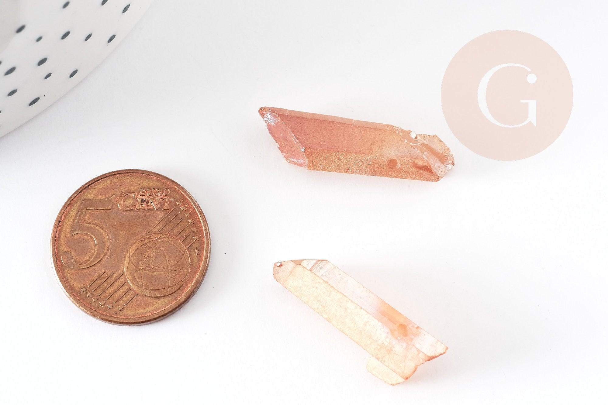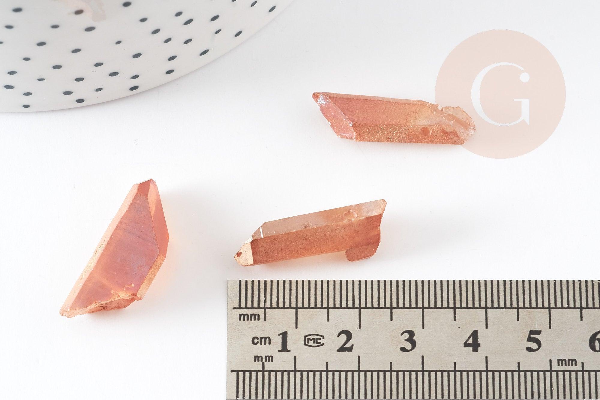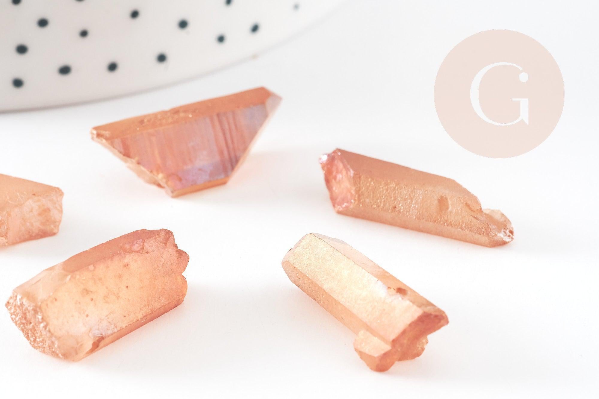 Perles cristal de roche orange irisé, fournitures créatives, pierre brute, création bijoux, perle pierres, pierre naturelle, lot de 5