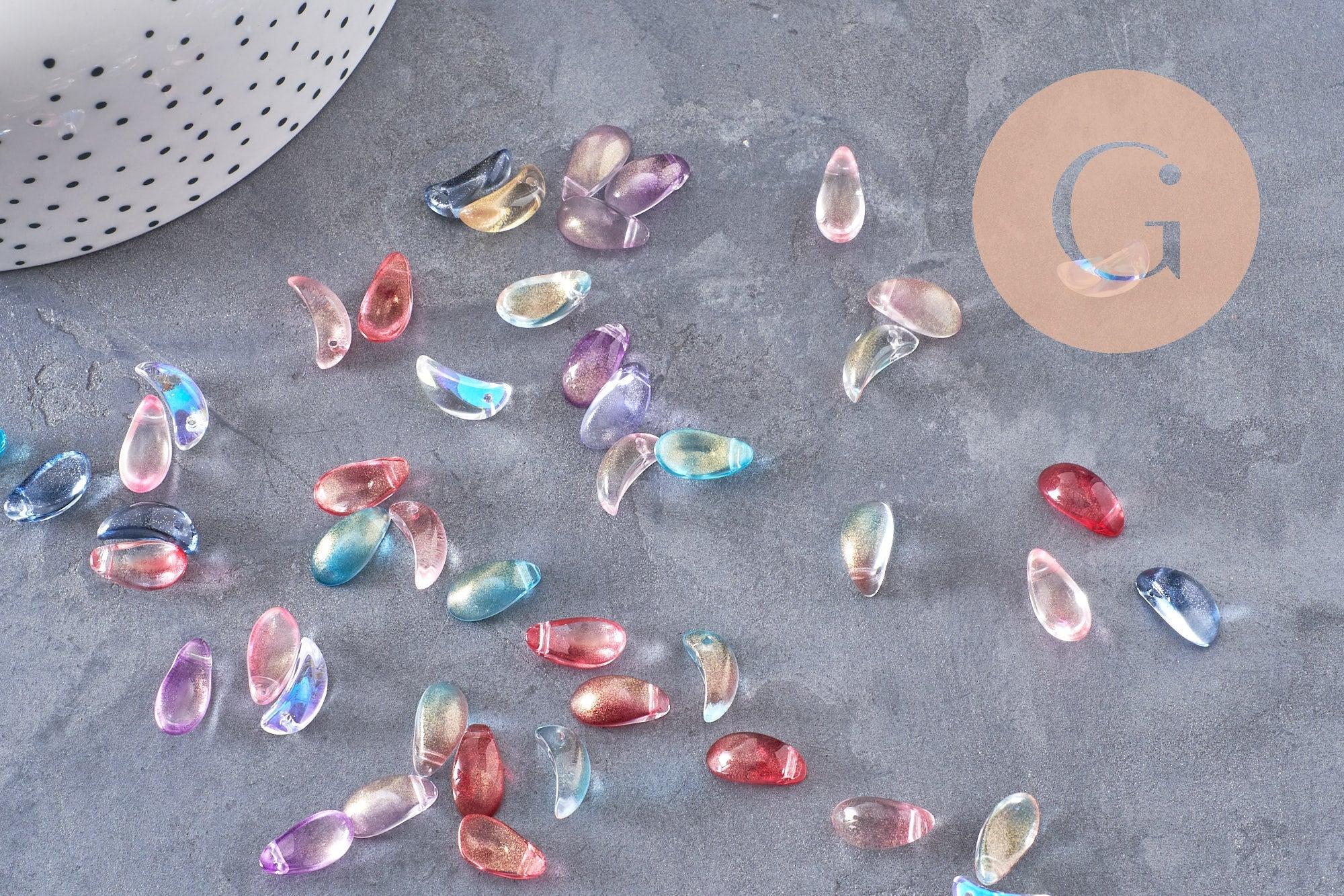 Perles goutte en cristal transparent irisé de différentes couleurs mouchetée de peinture or