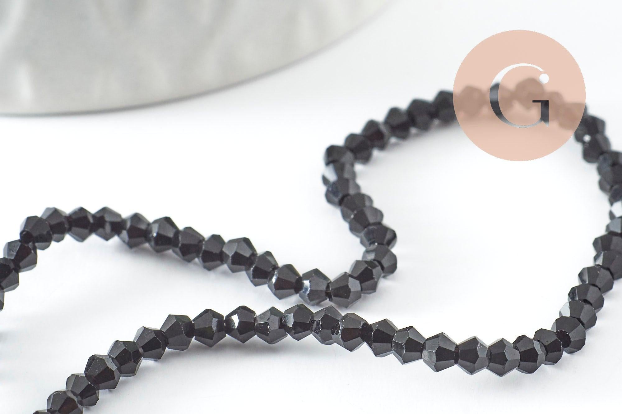 Ce fil de perles toupies en cristal noir facetté apportera une touche d’élégance et de brillance à vos créations. Leur petite taille (2x3mm) et leur éclat intense les rendent idéales pour sublimer vos bijoux les plus délicats. Faciles à associer, ces perles noires s’adaptent à tous les styles, du classique au moderne.