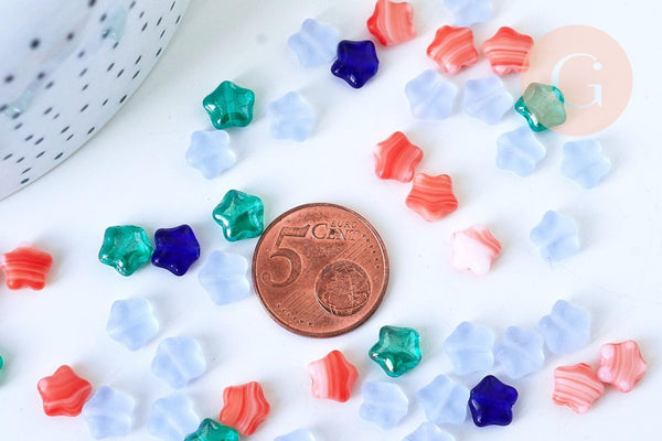 - Des Perles étoile en cristal tchèque de différentes couleurs.