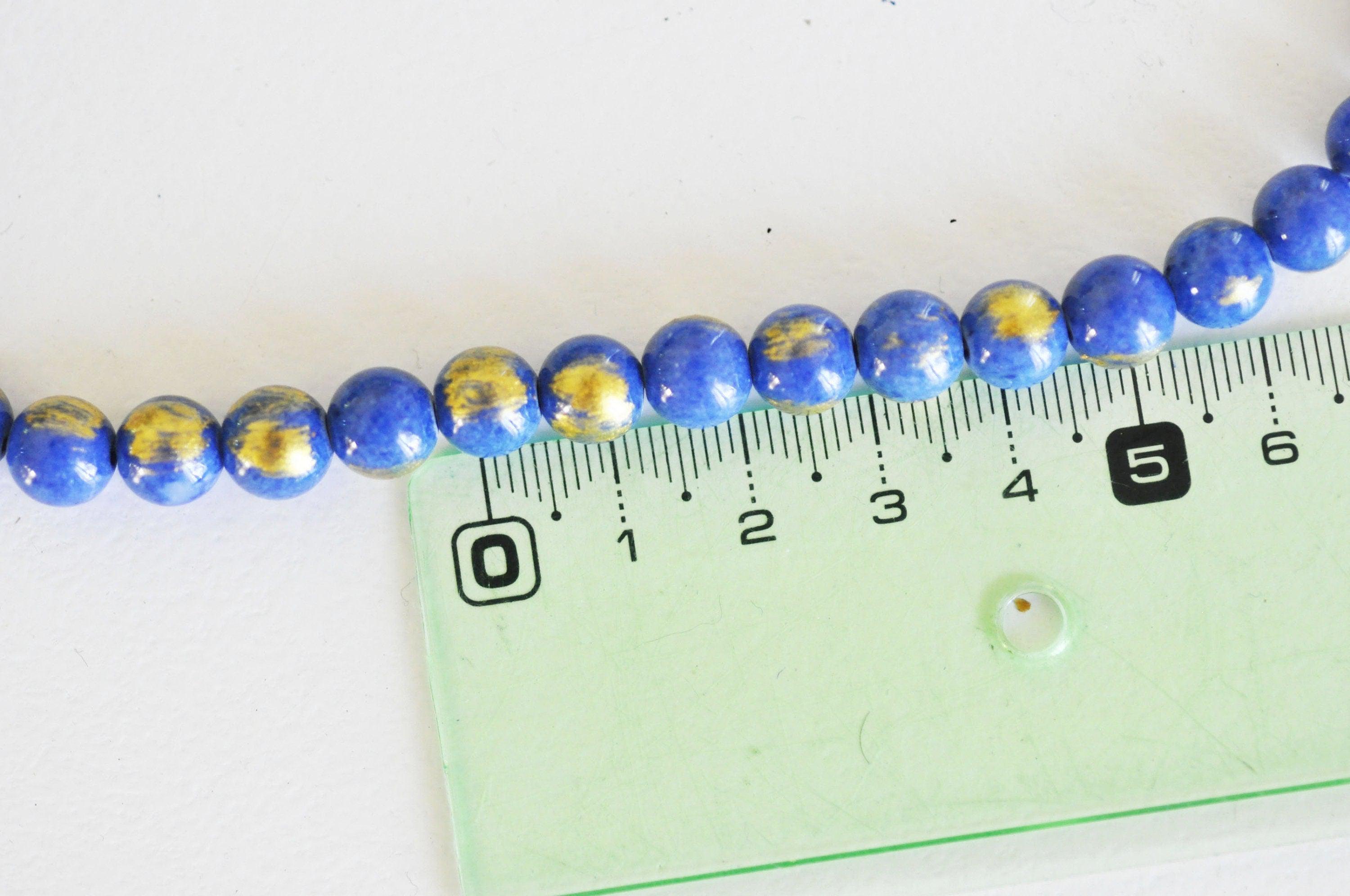 Perles jade bleu foncé et or perles rondes jade mashan bleu, bijou pierre naturelle,8mm, fil de 40,64 cm Perles en jade Mashan teinté et poudre dorée Jade teinté Diamètre : 8mm Trou : 1mm Vendu par fil de 40,64 cm...