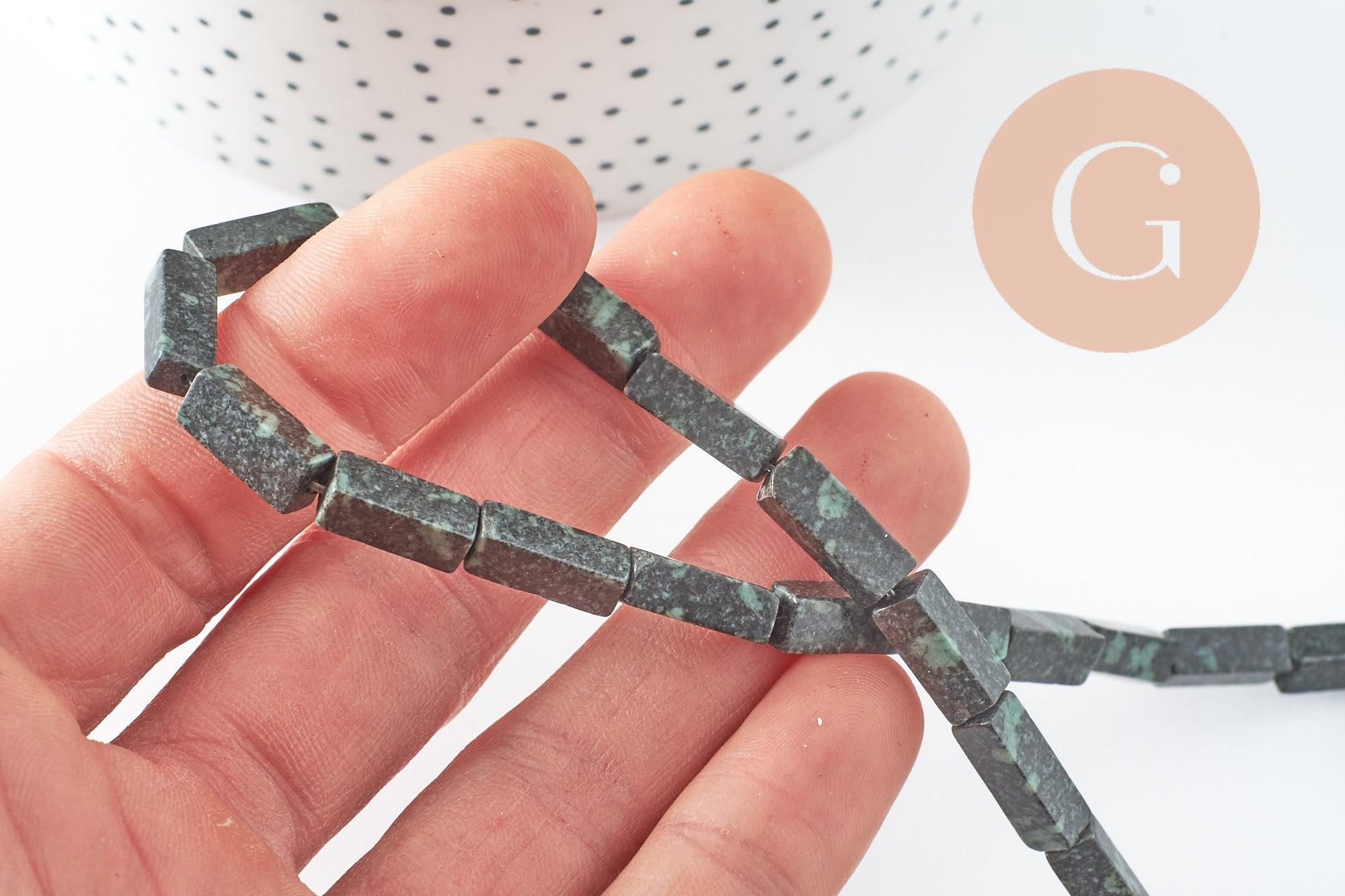 Perles jaspe noir et vert, fourniture créative, perle rectangulaire,jaspe tacheté,pierre naturelle,perles jade,perles pierre, le fil,15mm