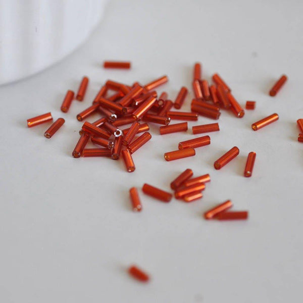 Perles rocaille Tube, rouge métallisé, Fournitures créative, perles rocaille rouge, perles métallisées rouge,6mm x 2mm, 5 grammes