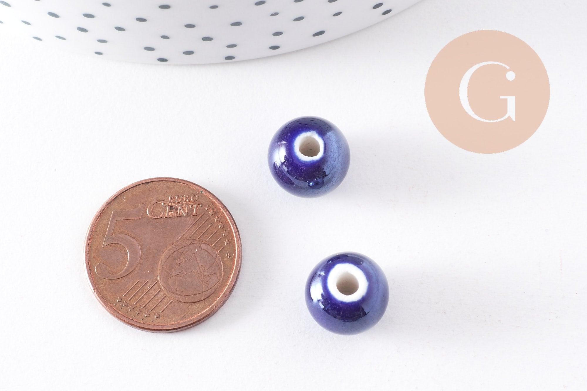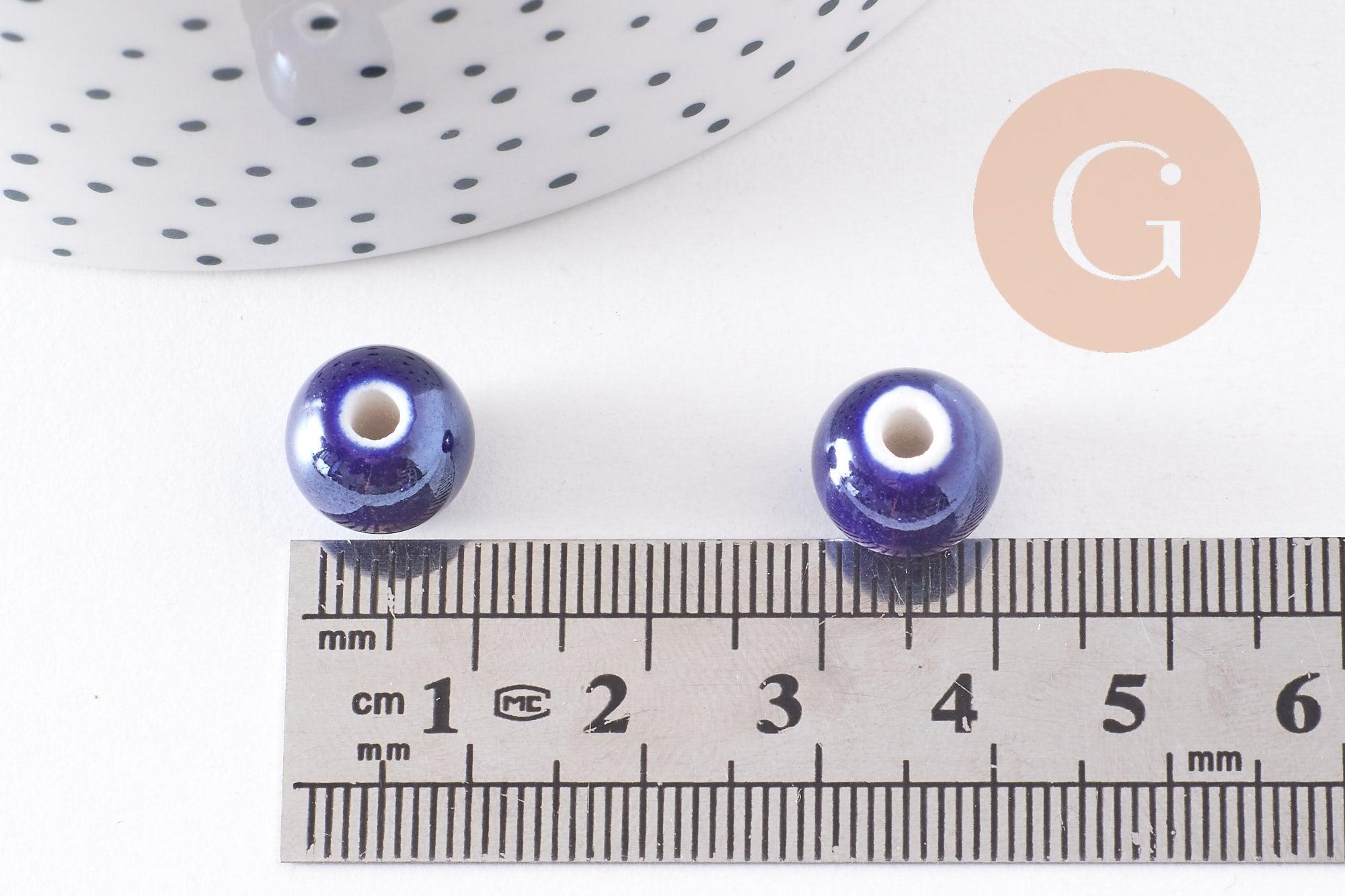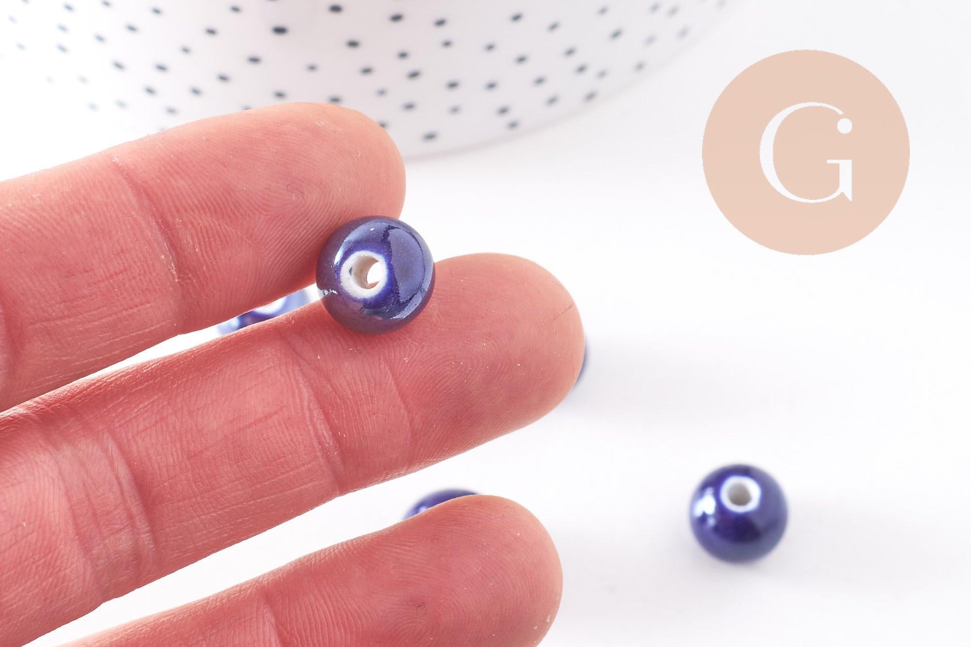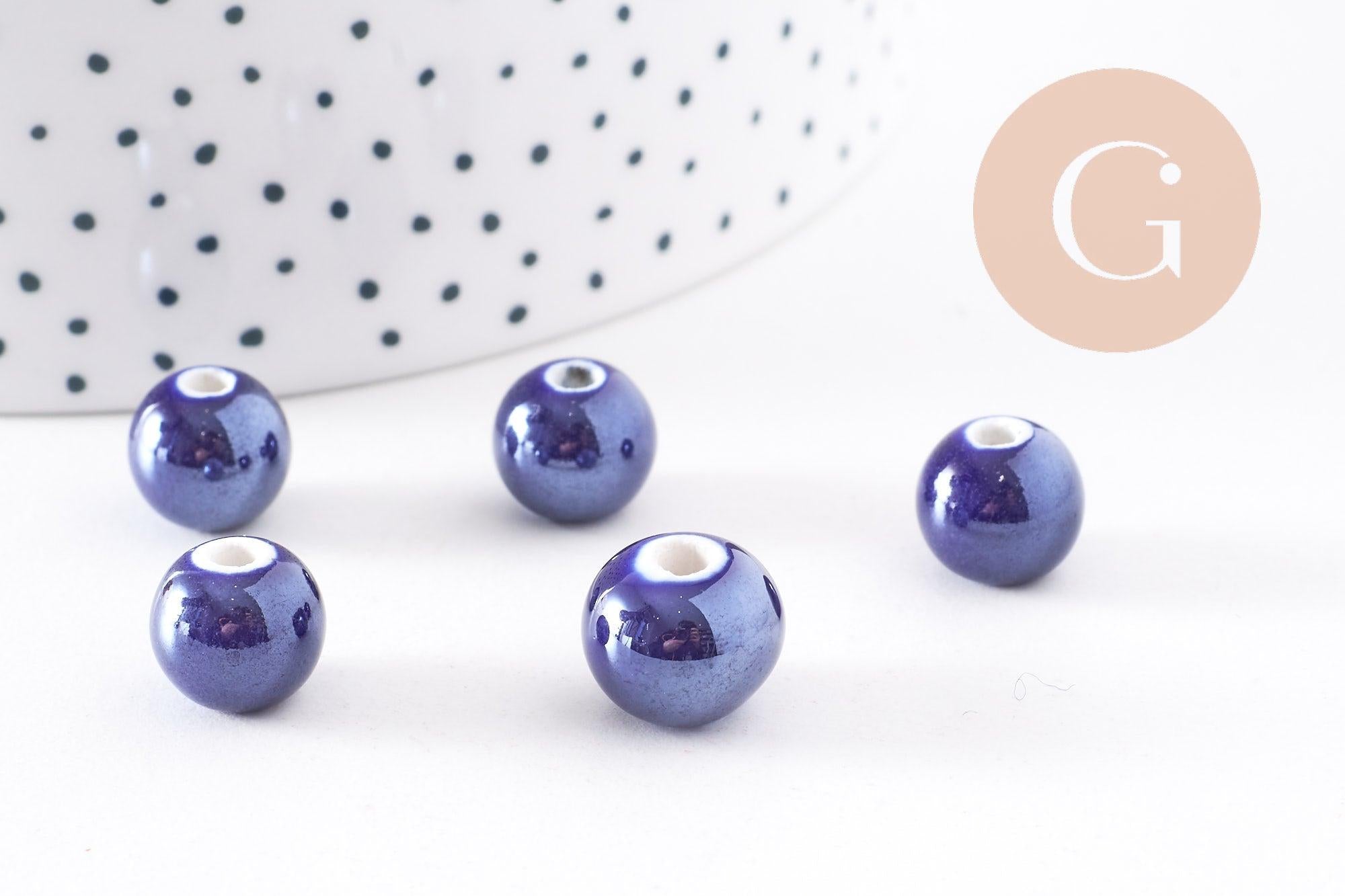perles ronde porcelaine bleu irisé, fournitures créatives, perle ronde bleu canard, porcelaine bleue, création bijoux, Lot de 5, 1cm