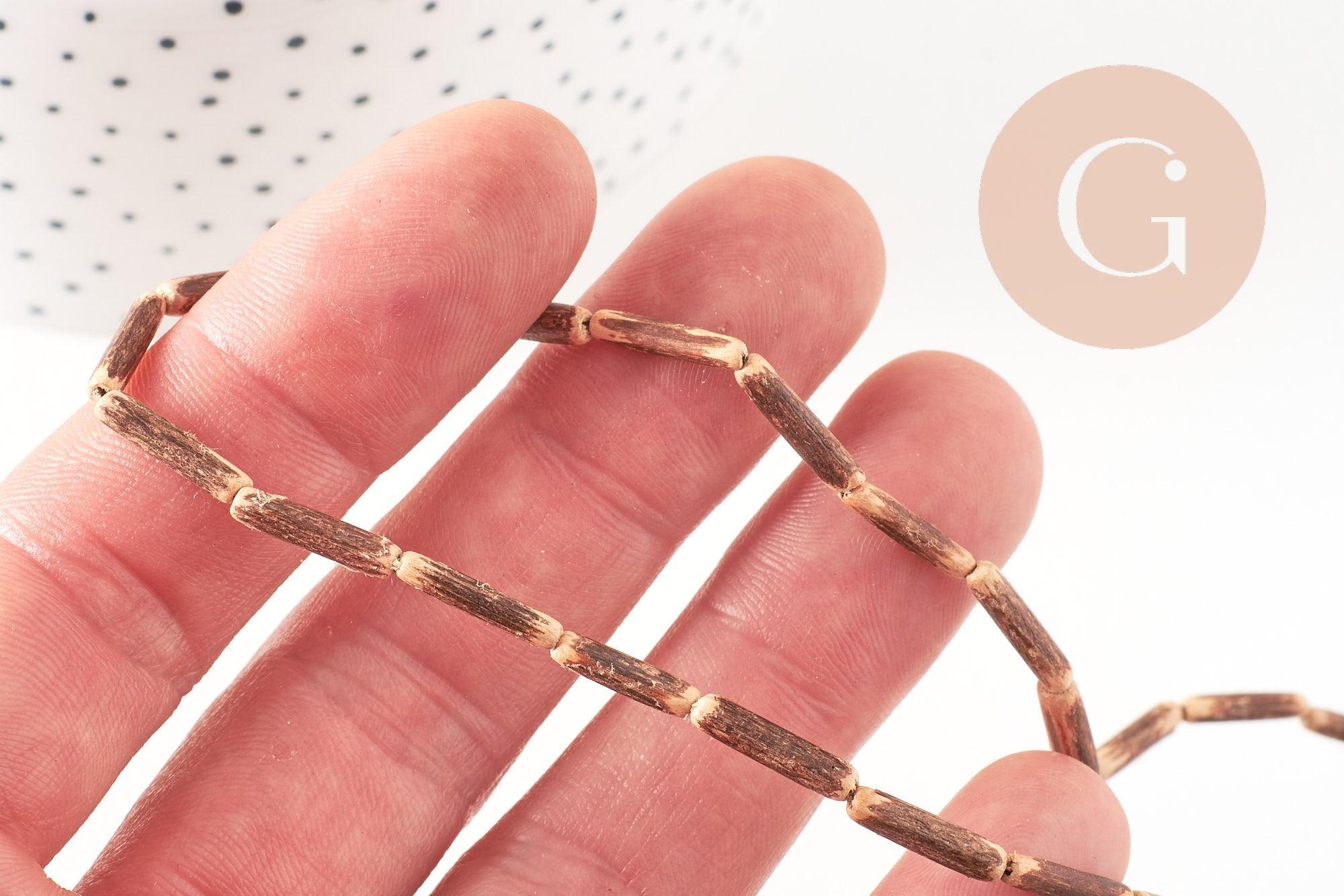 Perles tube coco nature, bois naturel, perles bois, Perles tube bois,14-19mm, fil de 38cm, x1 G0014