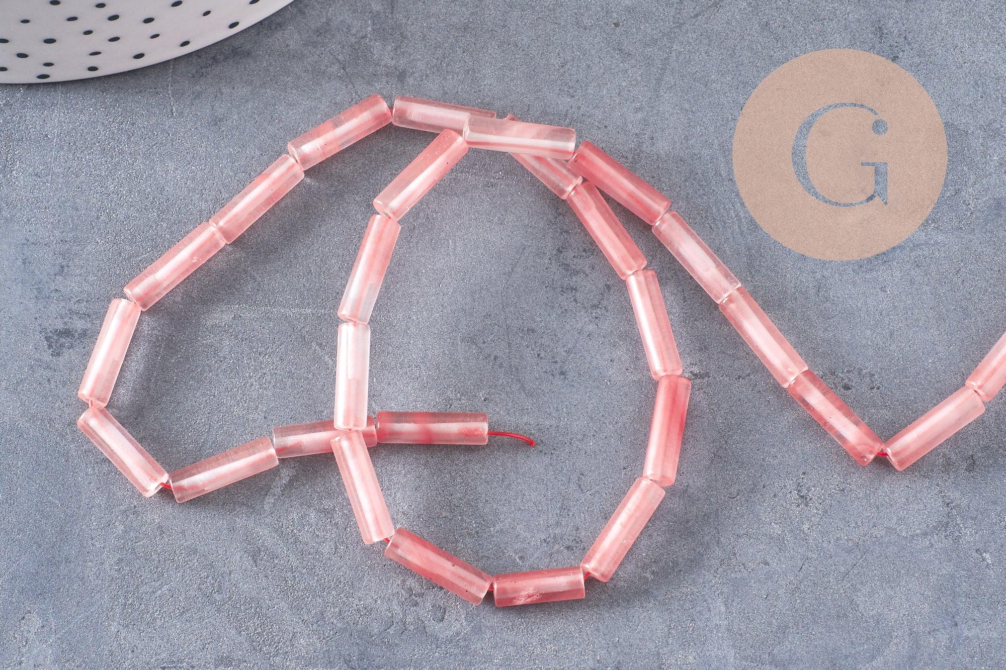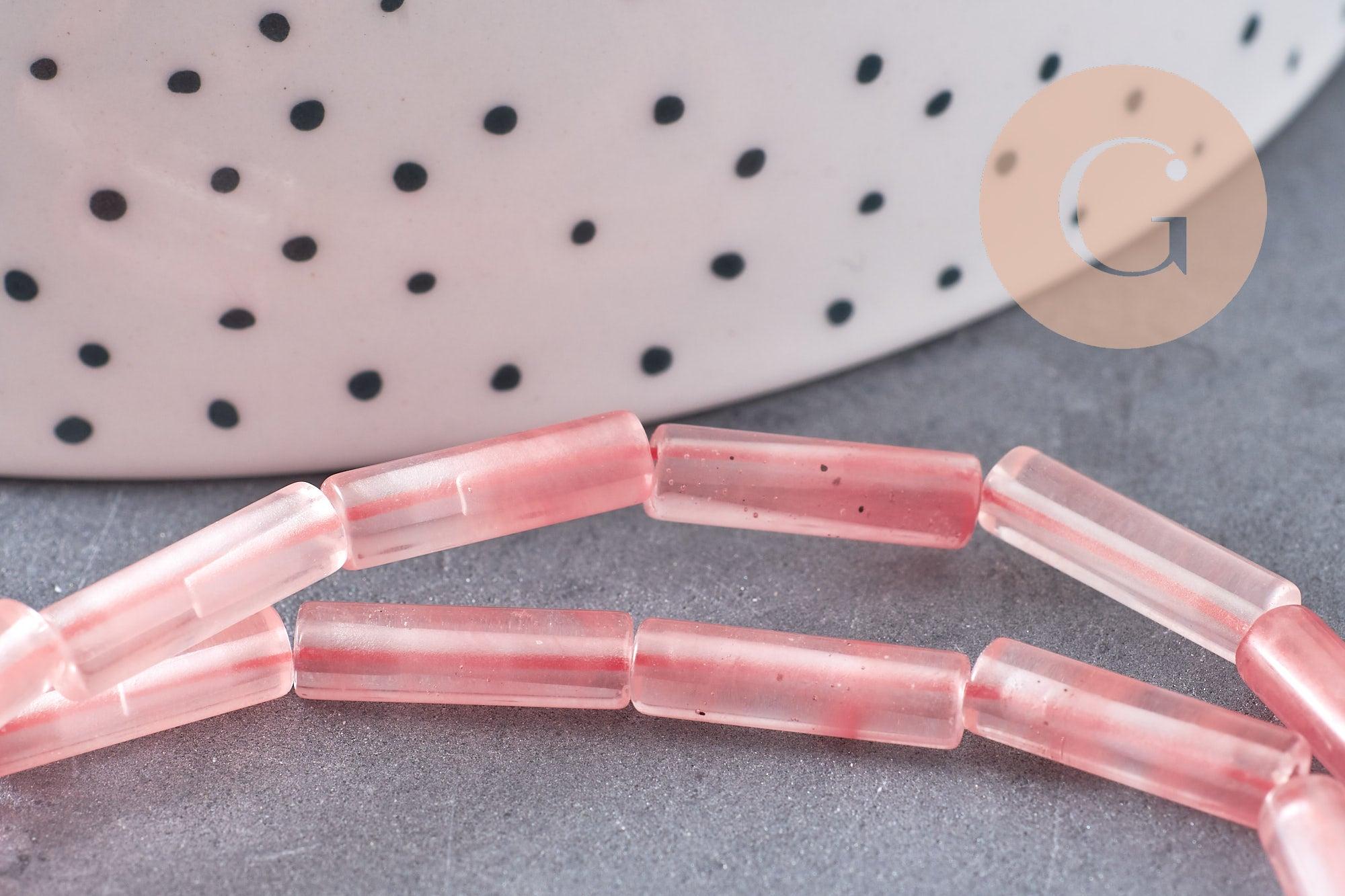 Craquez pour ces ravissantes perles tube en verre quartz cerise, parfaites pour ajouter une touche fruitée et lumineuse à vos créations de bijoux fantaisie. Leur teinte rosée transparente et leur forme en colonne en font un incontournable pour créer des designs élégants et modernes.