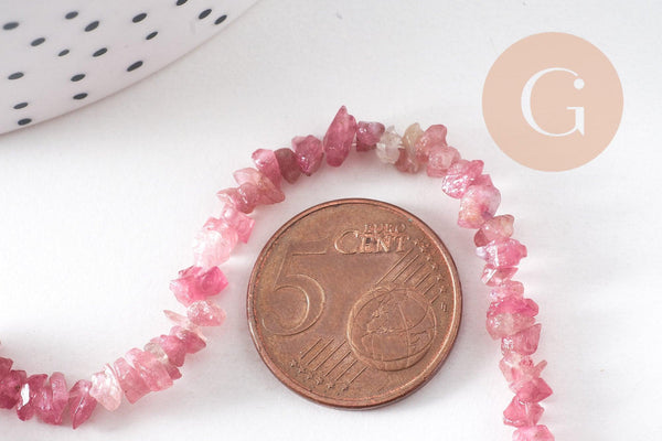 Ces perles chips en tourmaline naturelle présentent de magnifiques teintes de rose fuchsia. Idéales pour des créations modernes et minérales, elles ajoutent une touche de couleur vibrante à vos bijoux. Chaque perle est unique avec une forme irrégulière, ce qui apporte un charme brut et naturel à vos créations.