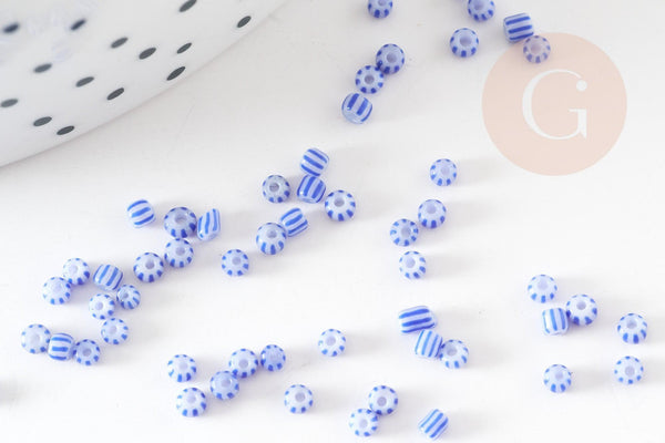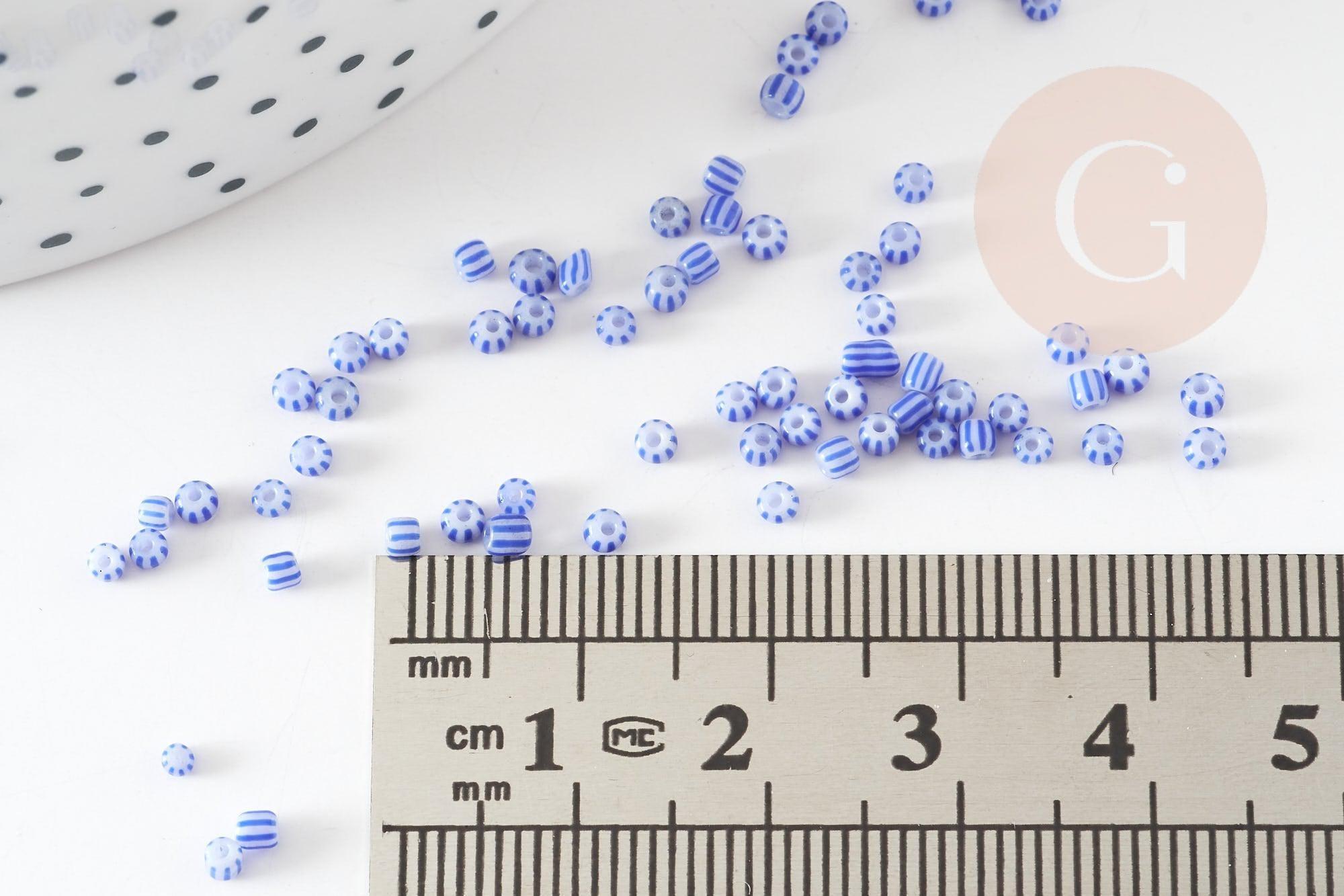 Cet ensemble contient 10 grammes de perles rocaille rayées bleu-blanc pour ajouter une touche de couleur et de texture à vos créations.