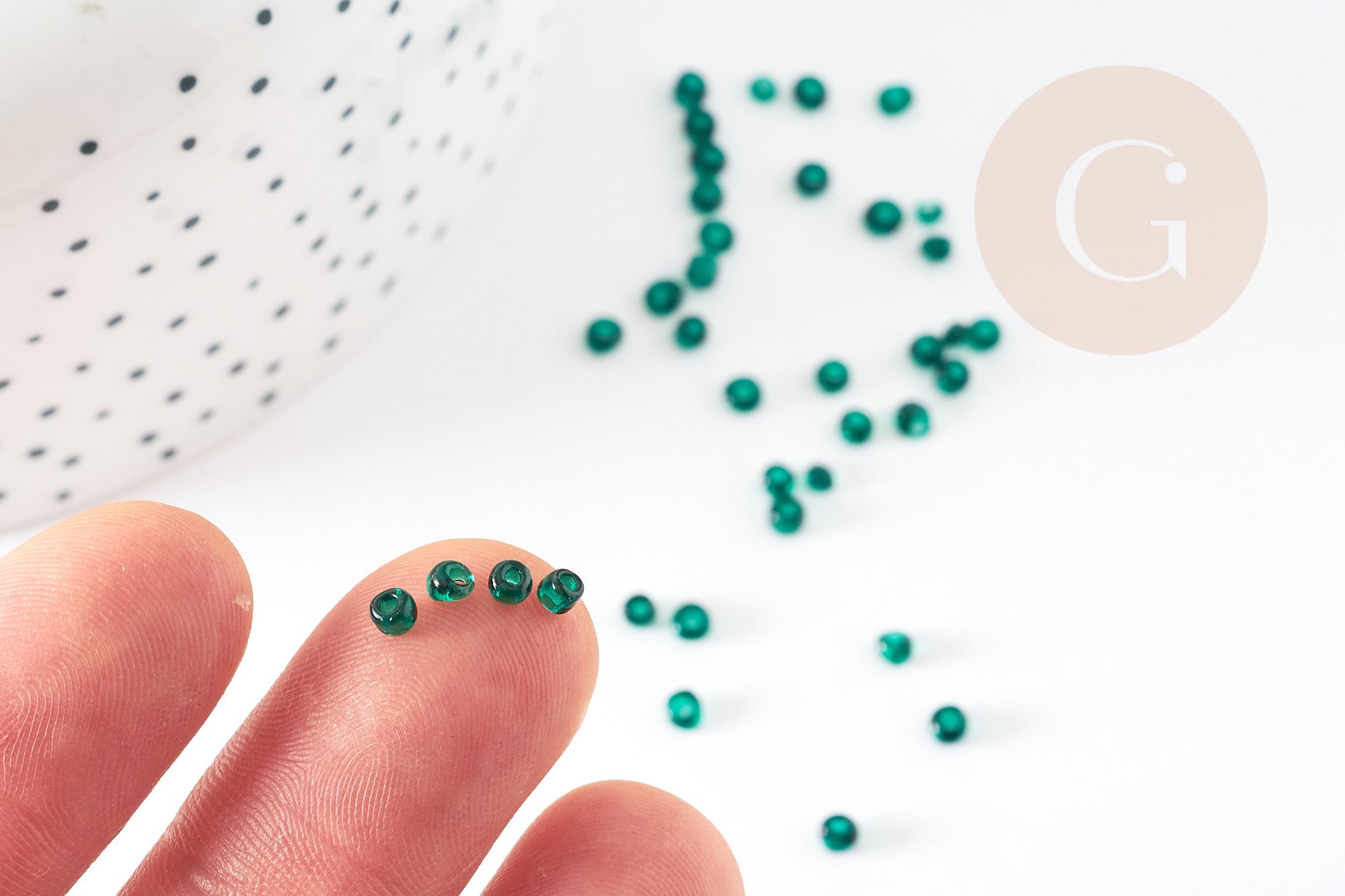 Ajoutez une touche de profondeur et de fraîcheur à vos créations avec ces perles de rocaille en verre transparent vert foncé. Elles sont idéales pour le perlage fin et les créations de bijoux délicats.