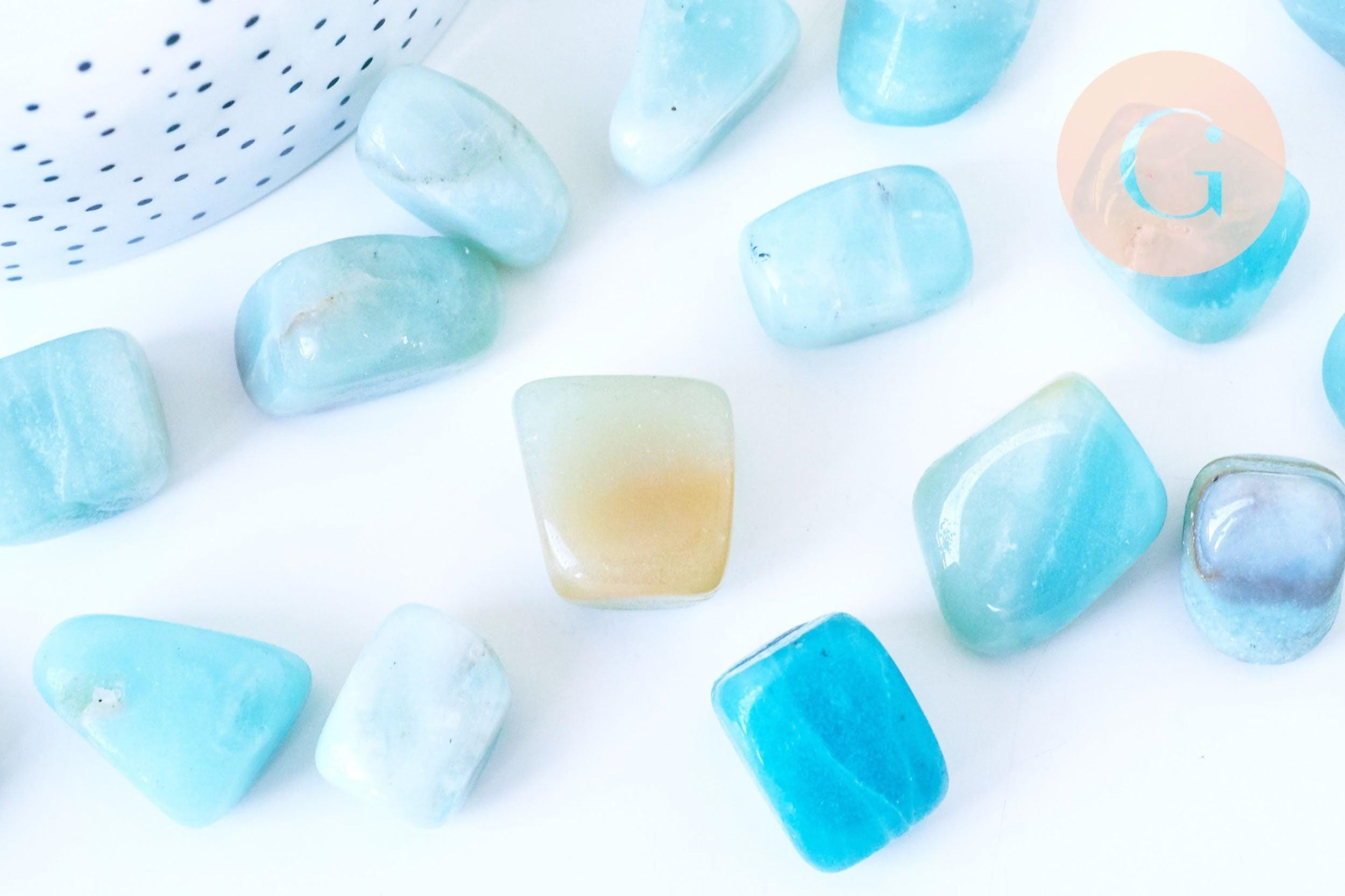 Des pierres en amazonite naturelle roulée, à garder contre soi dans un pochon pour bénéficier de toute leur vertus!