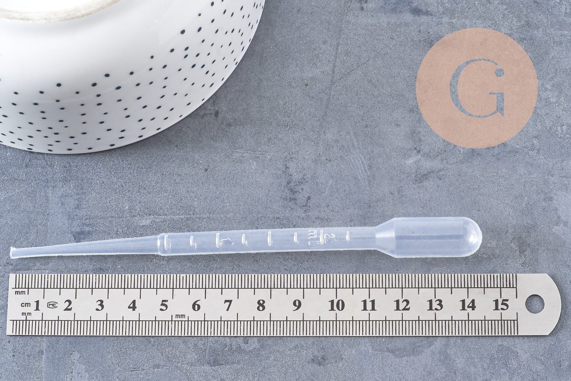 Une pipette graduee en plastique de 2ml pour remplir vos contenants de cosmétiques maison, parfums, hydrolats et huiles essentielles.