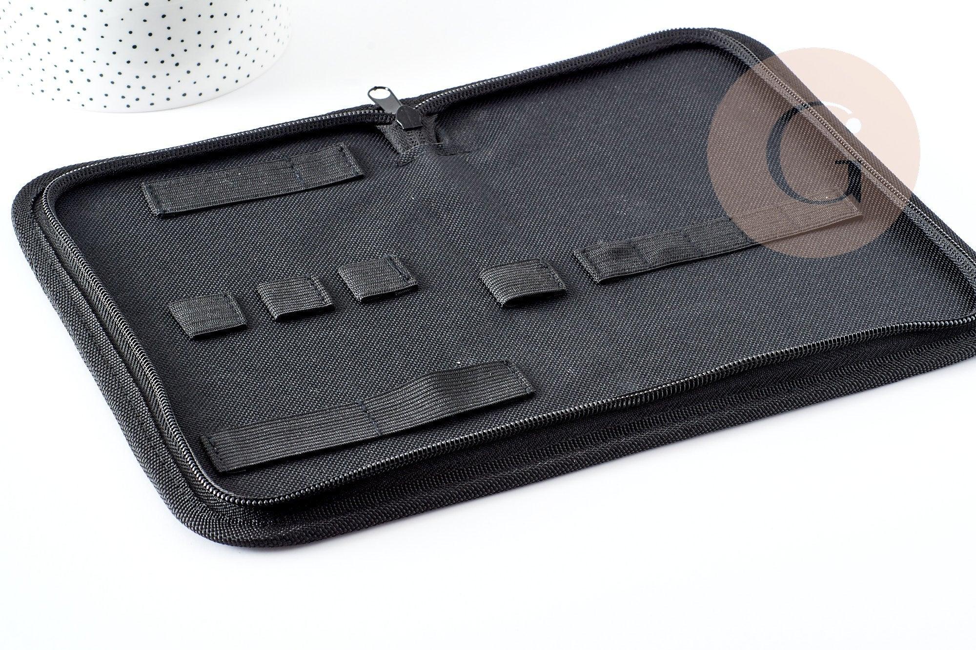 Cette pochette en nylon noir imitation cuir deviendra très vite votre pièce maitresse : idéale pour ranger vos outils séparément et les transporter.